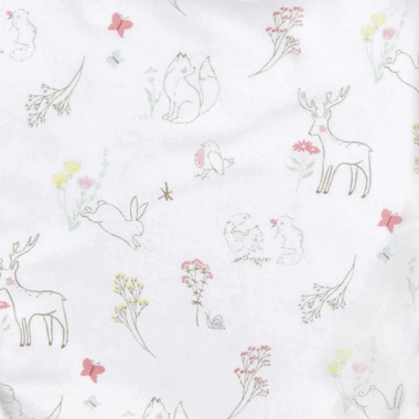 Set of three baby swaddle blankets featuring a solid pink, a pink floral print, and a white woodland animal print. Zipper bottom for easier and faster changes. Made with soft fabric for baby's comfort.