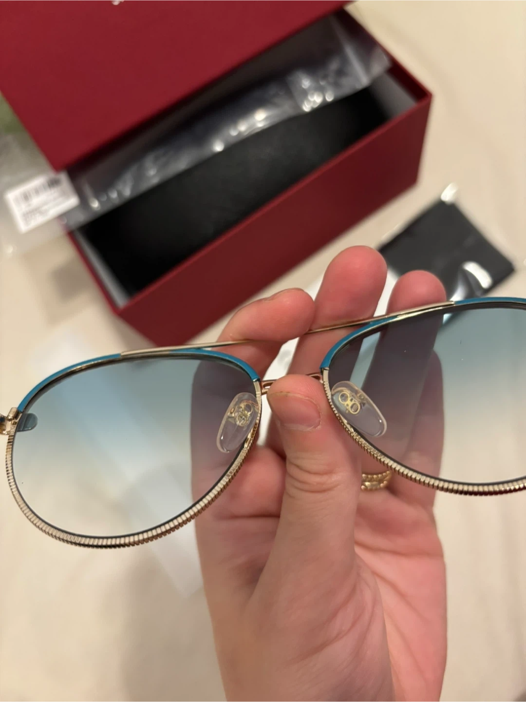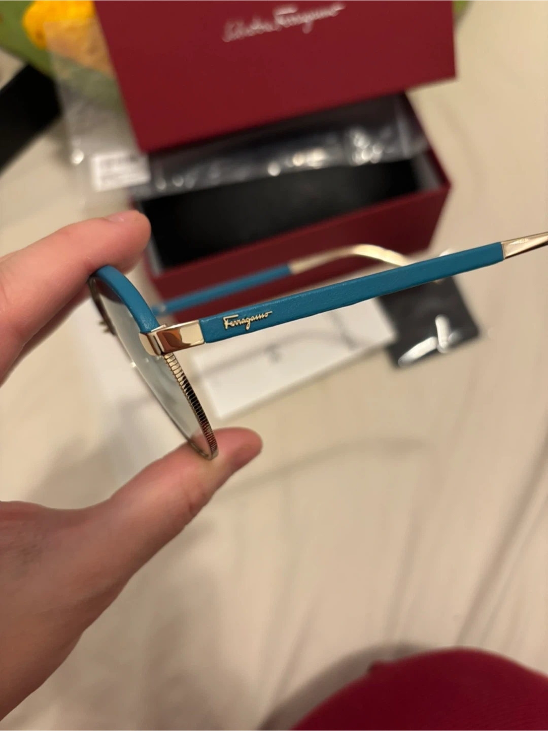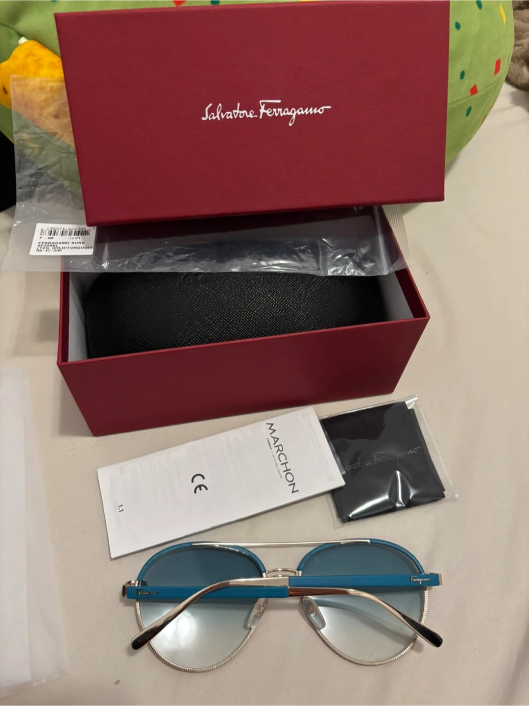These Salvatore Ferragamo SF225SL sunglasses are in new condition and come with the original box. The stylish turquoise colour makes them a great accessory for any outfit. The model number is SF225SL 741 59017 145 #1.