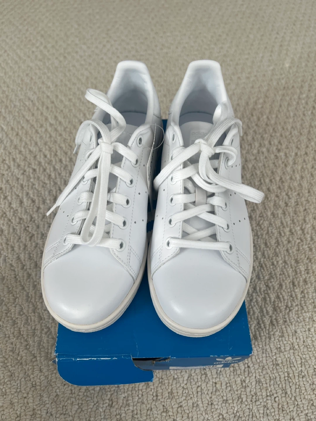 Classic Adidas Stan Smith W sneakers in white. Original box included. Leather upper. Size 6 fits like a 7.