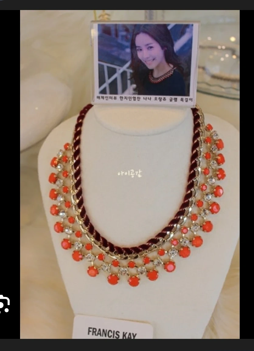 Gorgeous statement necklace with faux coral and clear rhinestones. Features a braided maroon velvet and gold-tone chain design. This piece adds a pop of colour and sparkle to any outfit! Brand new.