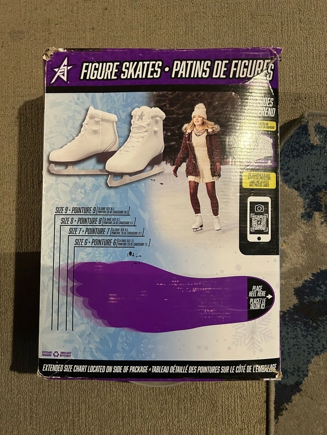 Brand new figure skates in their original box, ready for gliding across the ice! Perfect for beginners, professionals or those looking to upgrade, they offer great support and comfort. These figure skates boast a sleek design and durable construction, ensuring a smooth skating experience.