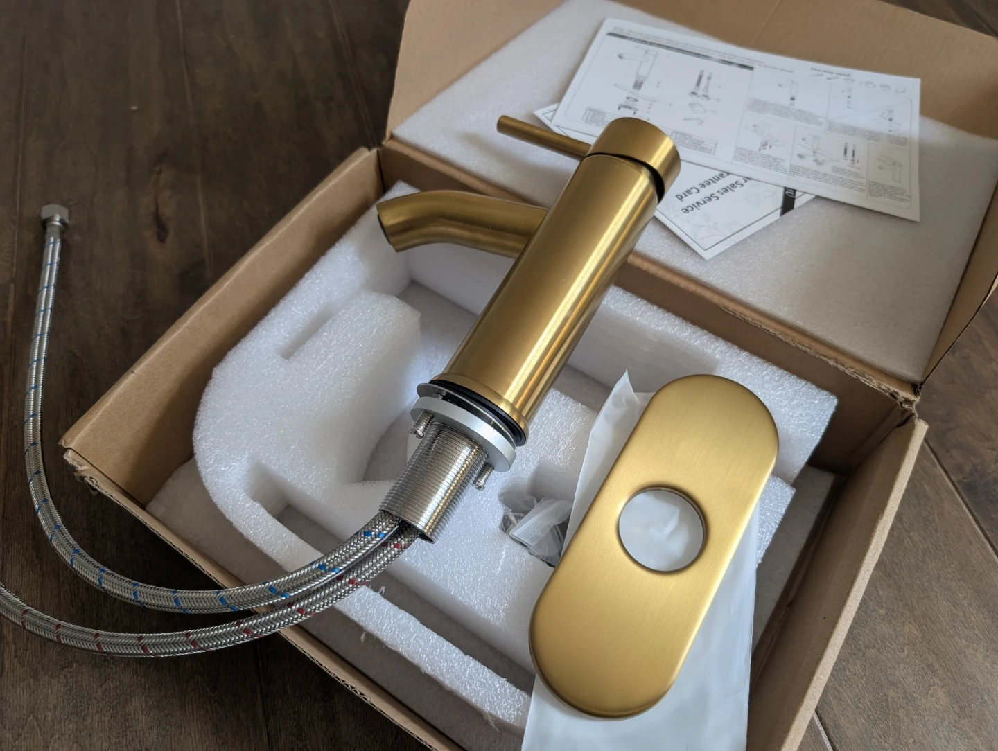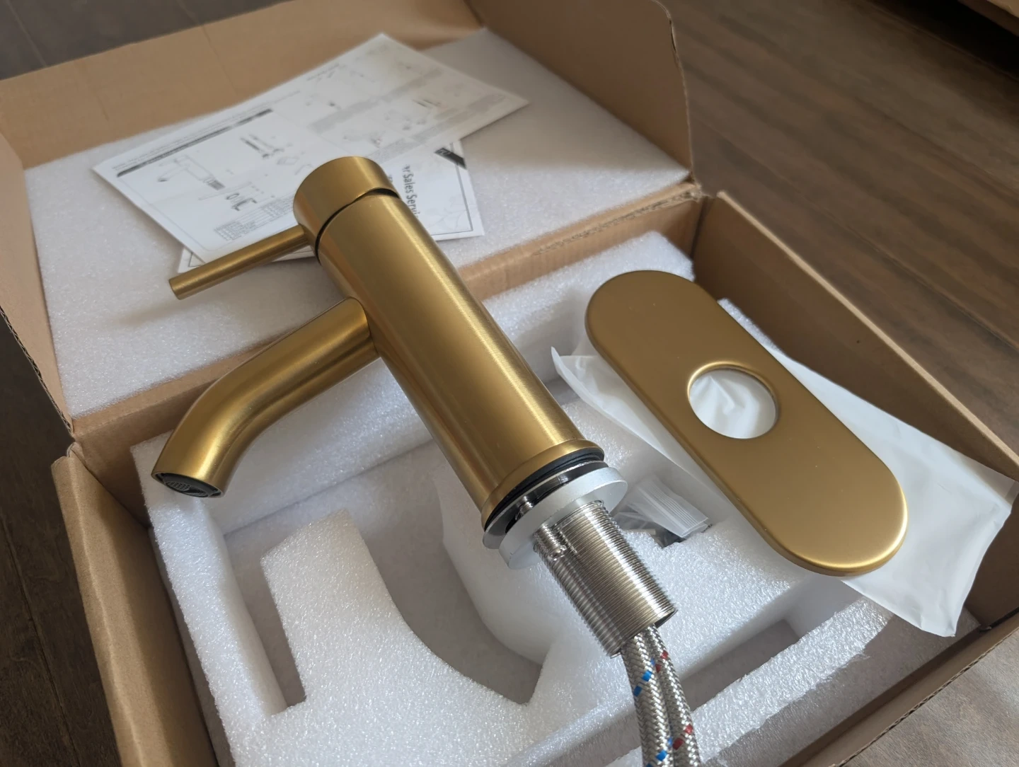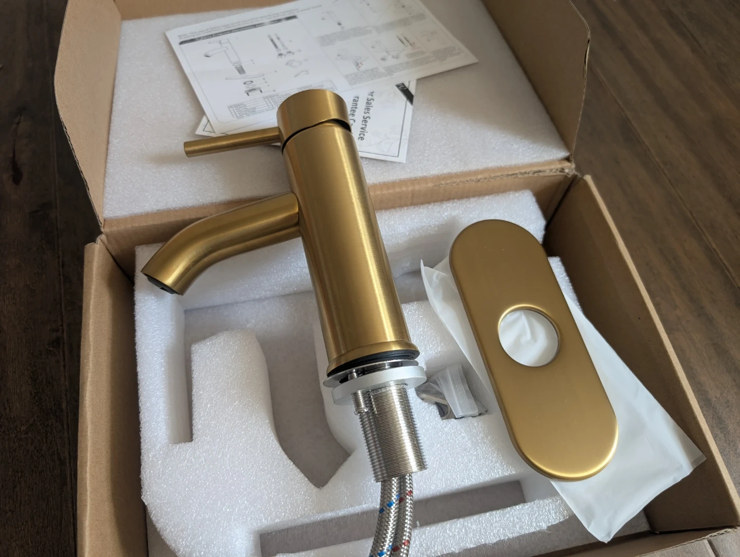 Brand new gold bathroom faucet for sale. Single hole, single handle basin, plate included, $45 FIRM.