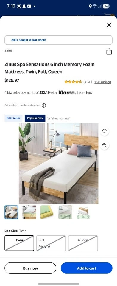 Selling a brand new Zinus Spa Sensations 6" Memory Foam Mattress, still in the original sealed box. Retails for $129.97+tax. Great for guest rooms, kids' rooms, sofa beds, RVs, campers, dorms, or rentals. Medium-plush memory foam for comfortable support. Easy setup as it's a mattress-in-a-box style. Perfect if you want a good quality mattress without paying full retail. New in box!