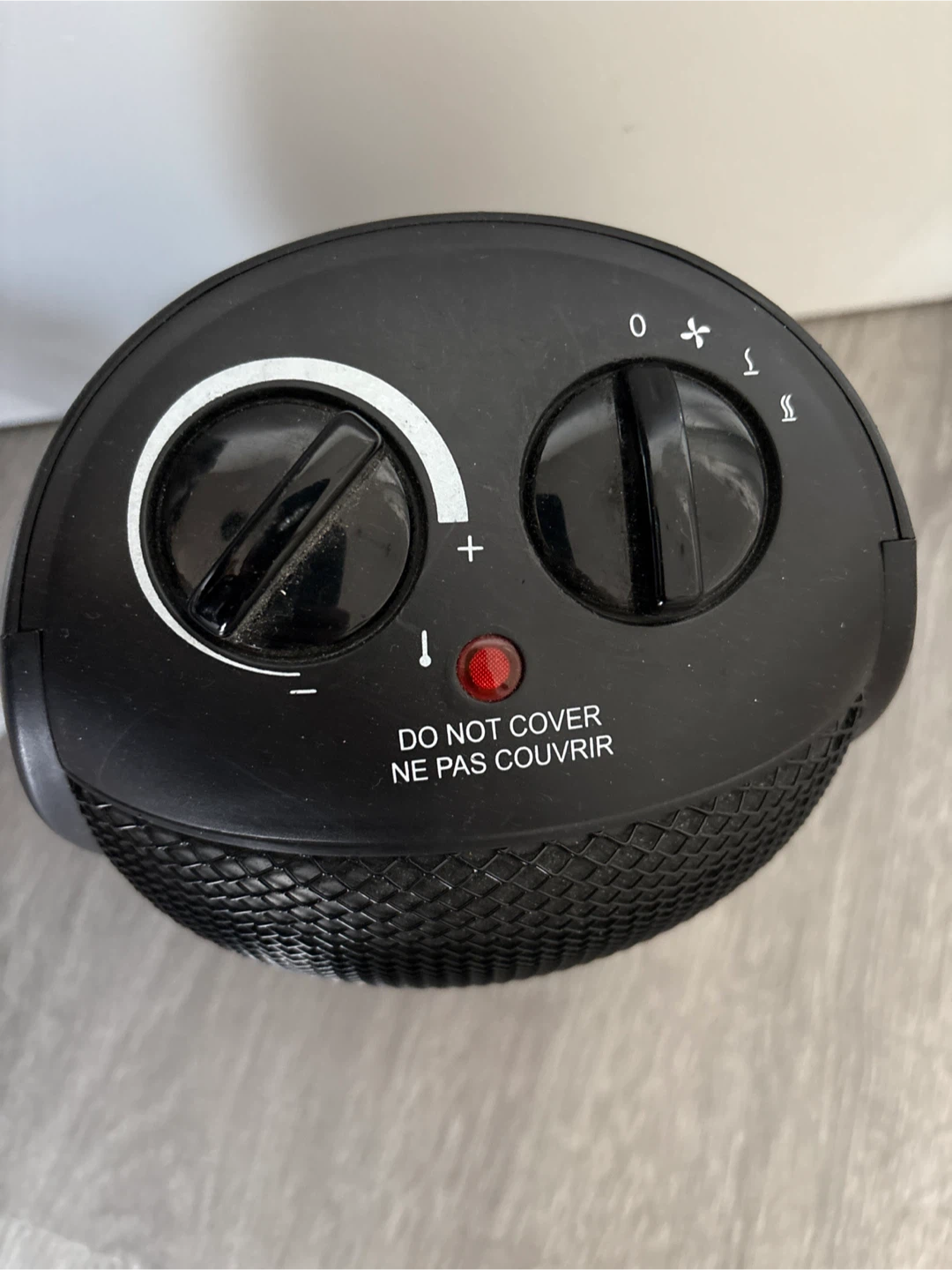 Selling a portable space heater in black. It's in great condition and ready to keep you warm during these chilly months! Features include adjustable settings and a compact design for easy portability