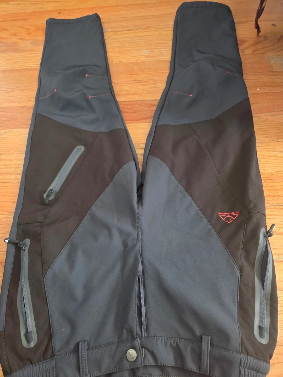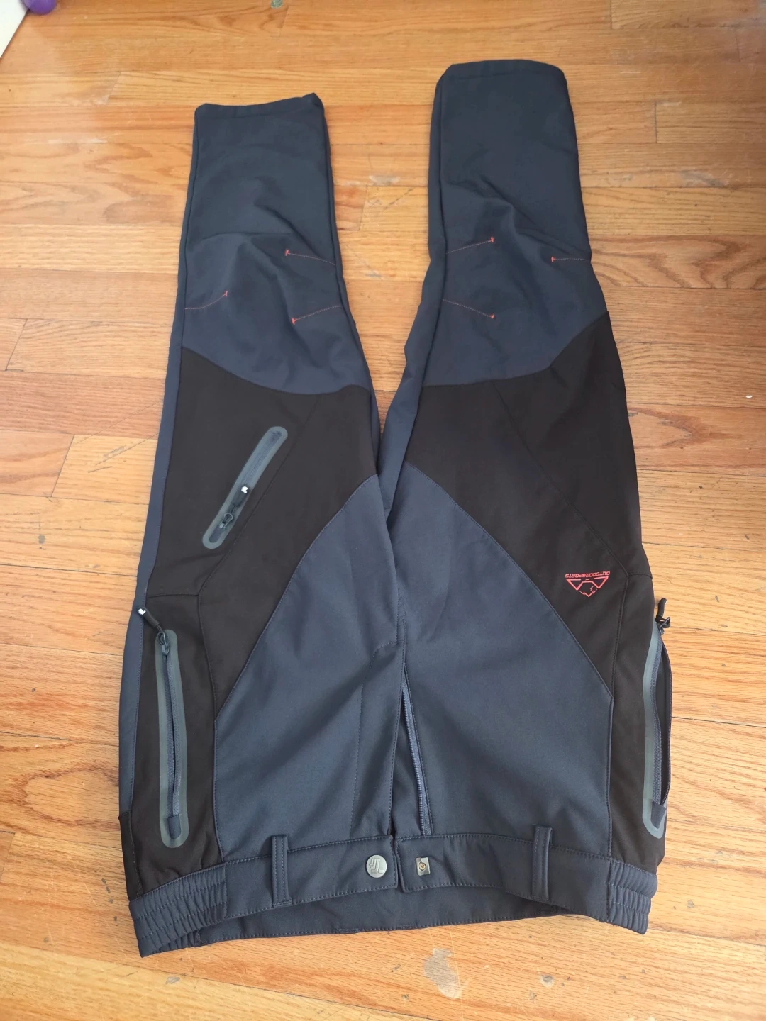 These hiking pants are made with a durable, water-resistant material. They feature multiple zippered pockets for secure storage. Size US 32.