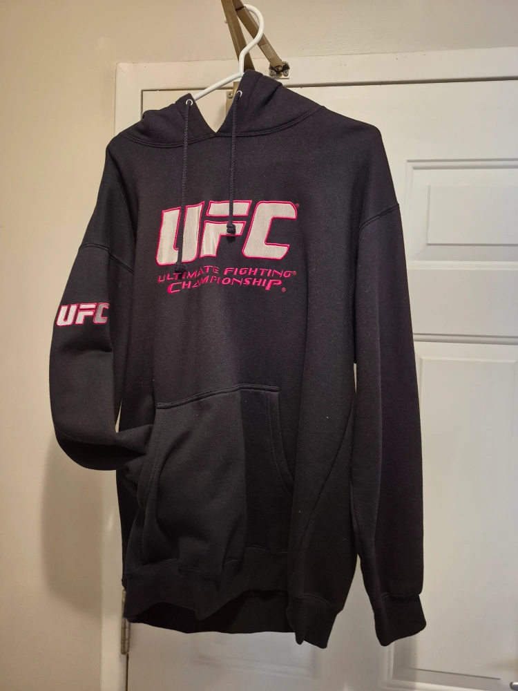 Selling a UFC Ultimate Fighting Championship hoodie. It's black with the UFC logo on the front and sleeve. Perfect for any UFC fan!