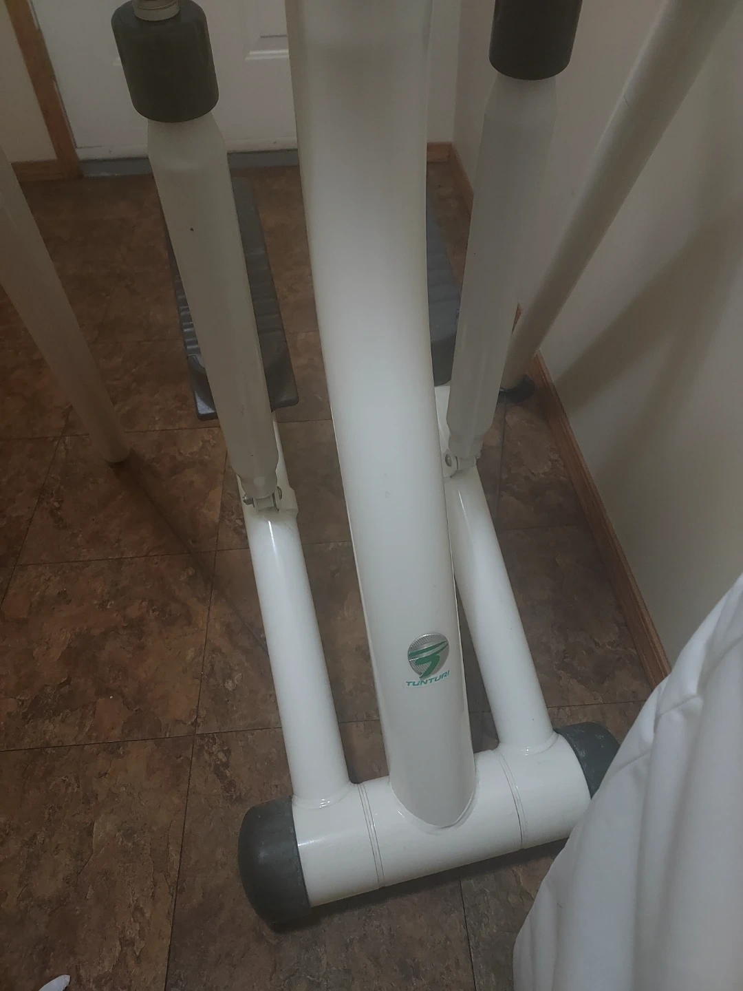 This is a Tri Stepper 500 machine. It's white with grey handle grips. It's a compact exercise machine. In excellent condition.