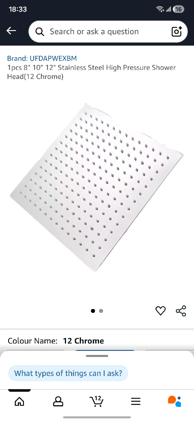 Selling a square shower head in chrome! It's a UFdapwexbm brand and made of stainless steel. This high pressure shower head is 8, 10, or 12 inches. It's in great condition and ready to be installed in your bathroom