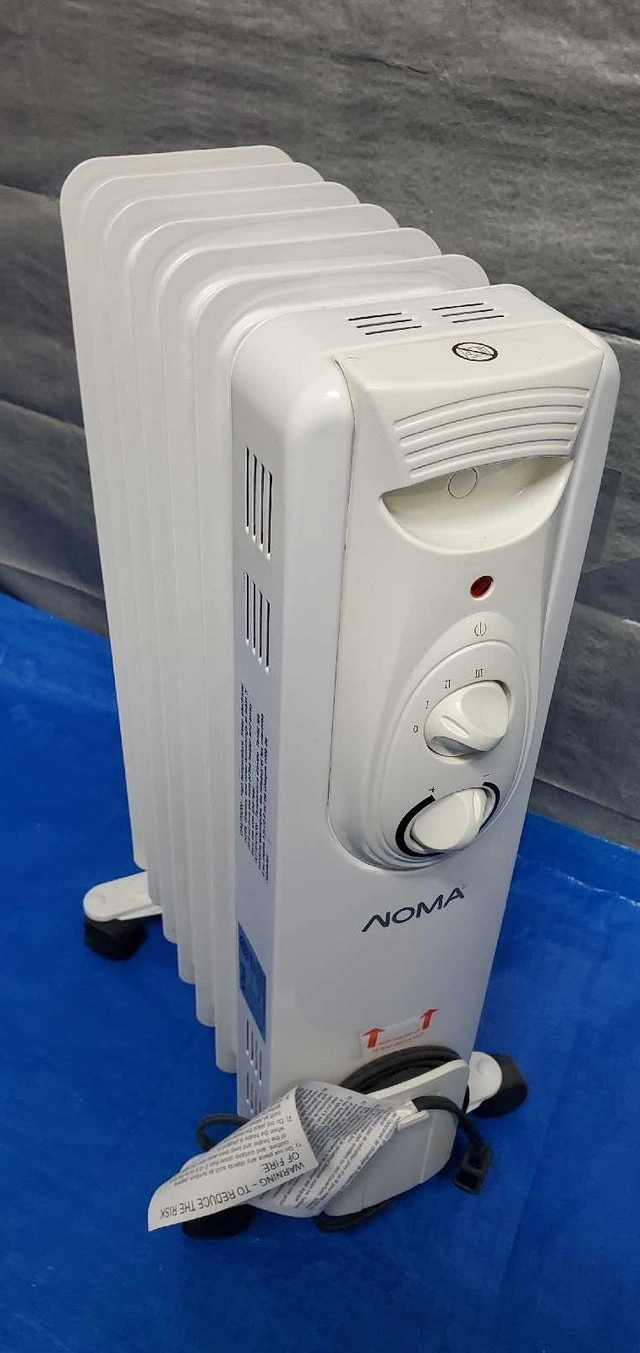 ➡️ Keep your space cozy with this Noma oil-filled portable radiator heater, featuring wheels, a thermostat, and 1500W of power. This unit has been thoroughly cleaned and is ready to provide warmth wherever you need it. This heater is used, but it's in good working condition.