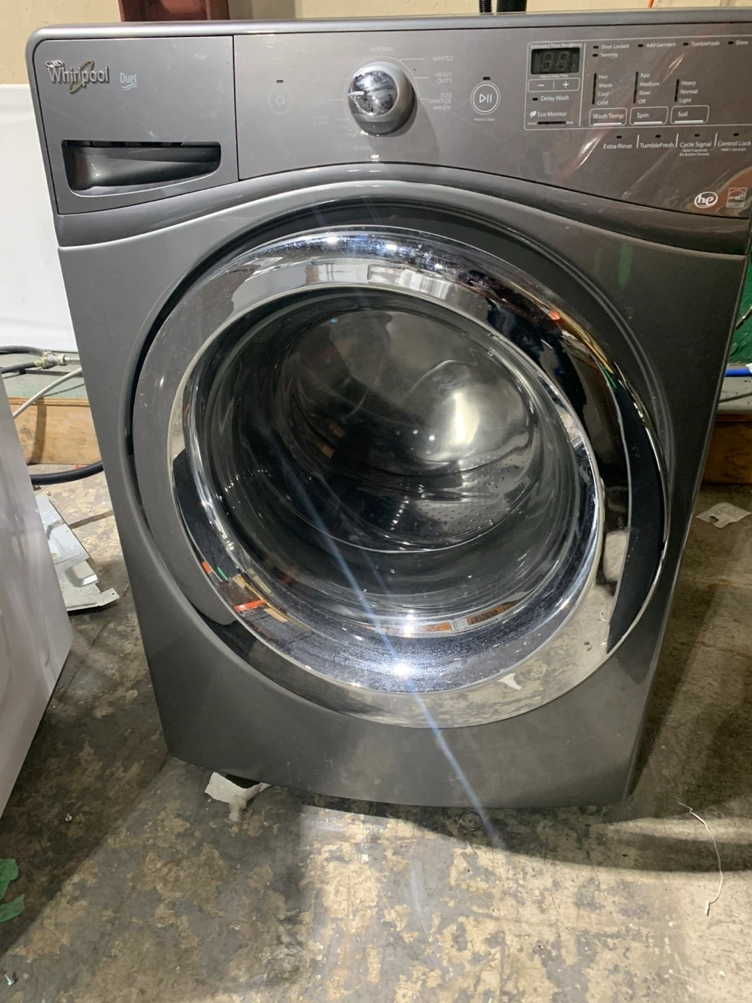 Selling a Whirlpool Duet front load washing machine in grey. It's in good working condition and ready to go!