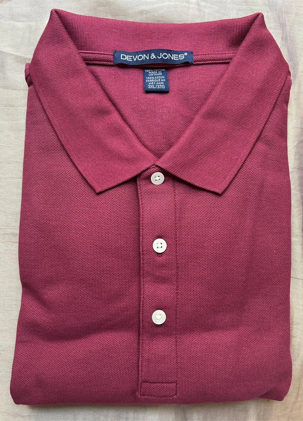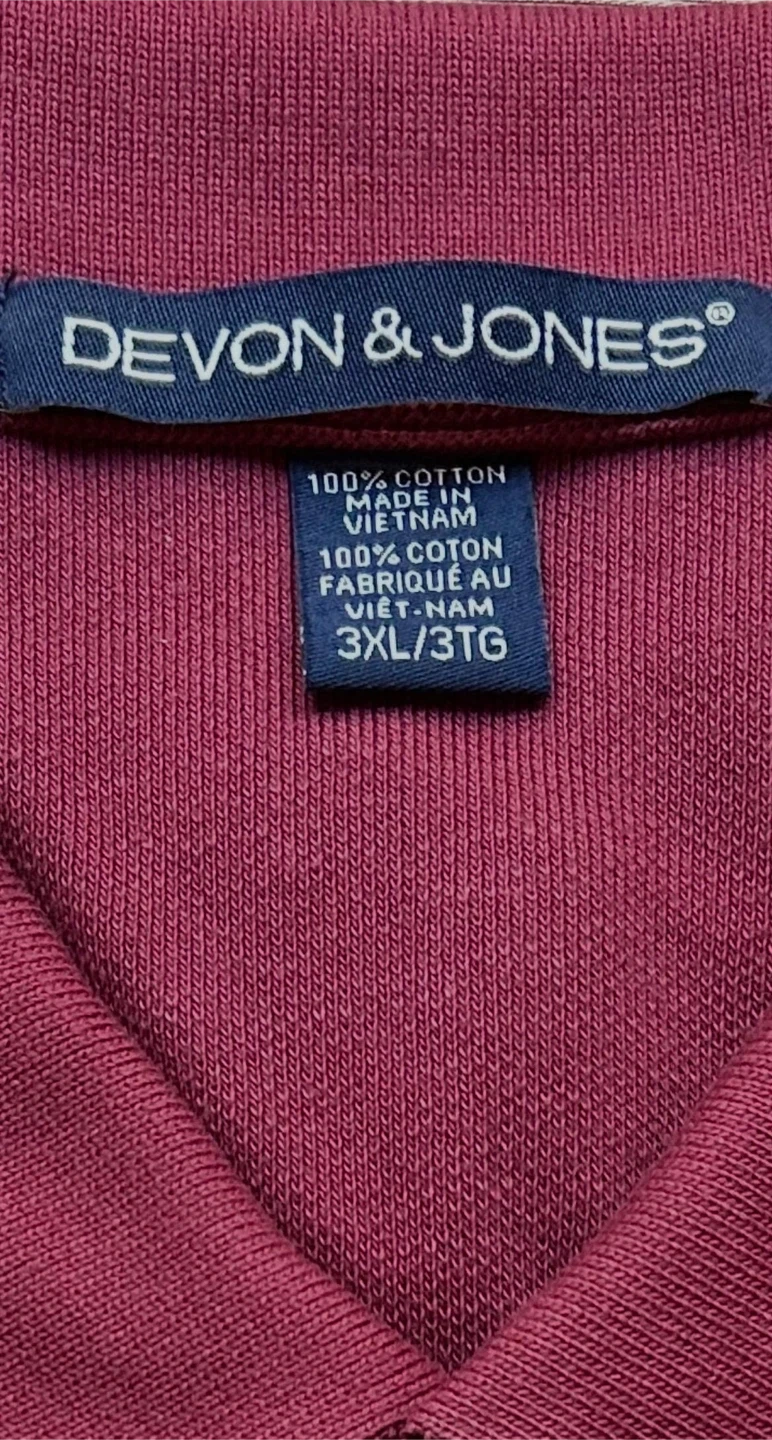 Devon & Jones polo shirt. 100% cotton material. Made in Vietnam. Size 3XL/3TG.