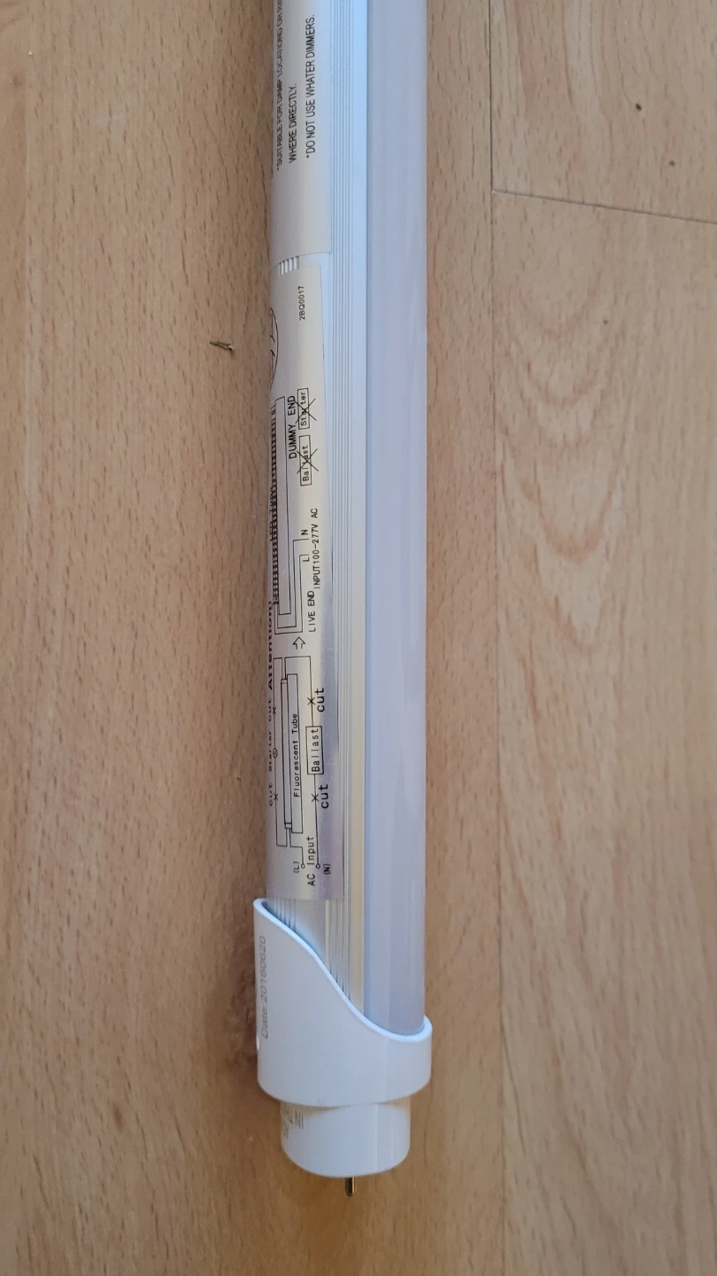 Installation Note: This is a "Type B" LED, meaning it wires directly to your house power. It requires a simple ballast bypass (cutting the old fluorescent transformer out of the circuit). A wiring diagram is printed right on the side of the tube for easy installation.