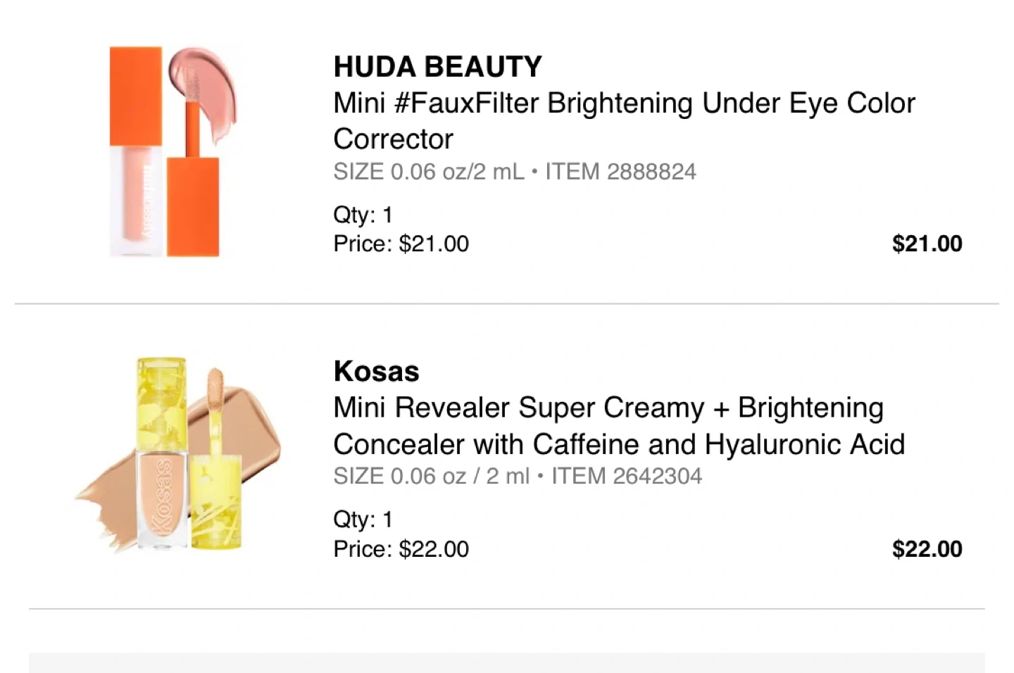 Huda Beauty mini brightener. Size is 0.06 oz/2 mL. It's designed for under eye brightening.Also Kosas brightening concealer. Both brand new in the original packaging . Each $13 it both for $25