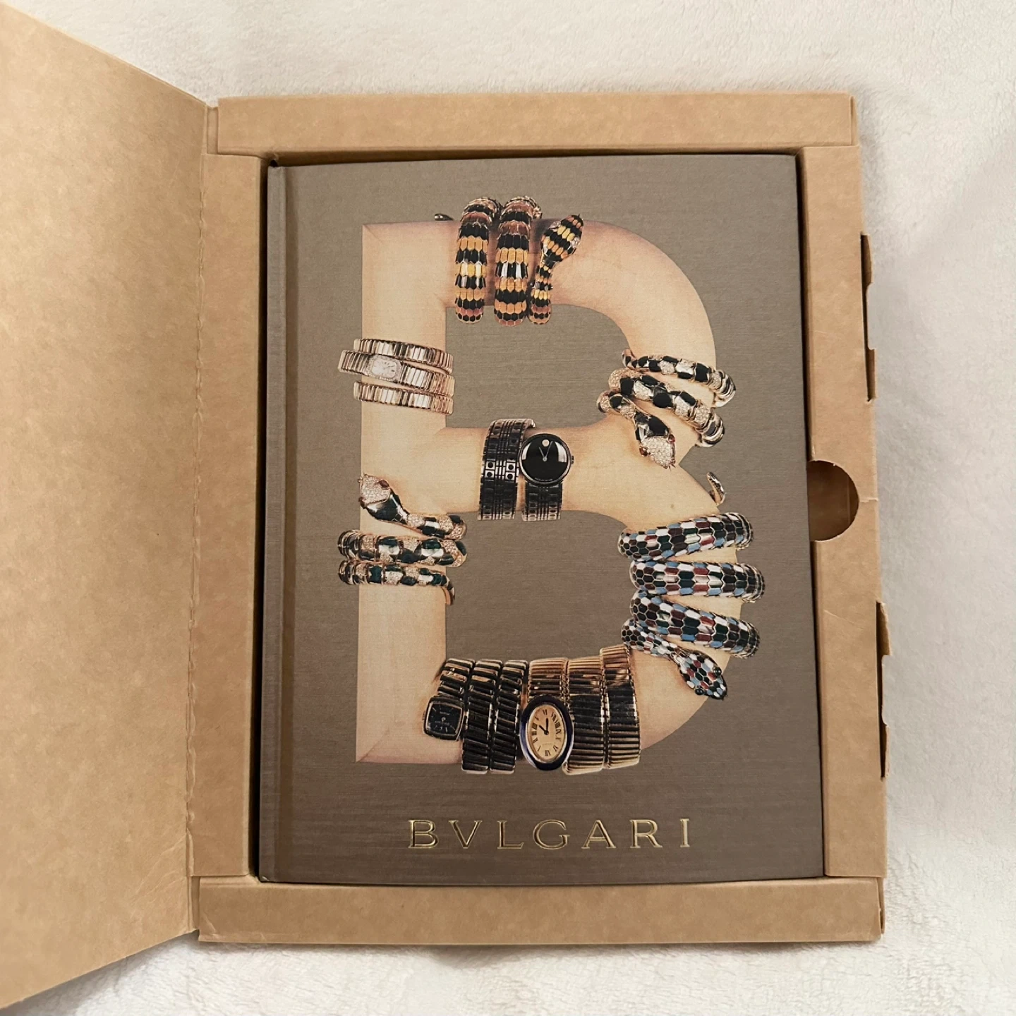 A BVLGARI book showcasing their story and jewellery collection. Features historical images and information about the brand's evolution. Book comes in a the original packaging.