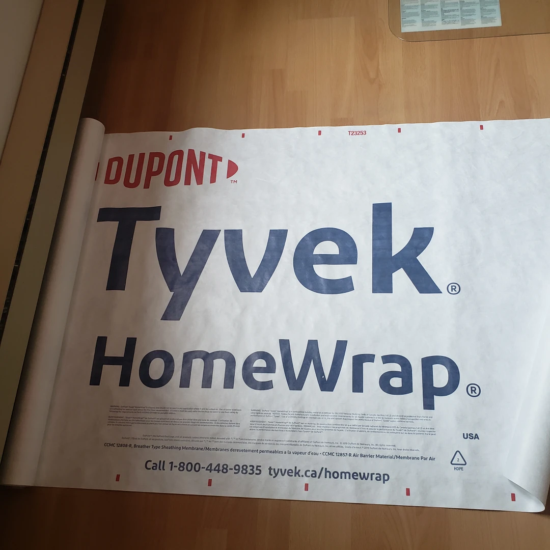 It's a breather type sheathing membrane and air barrier material. Call 1-800-448-9835 or visit tyvek.ca/homewrap for more info!
