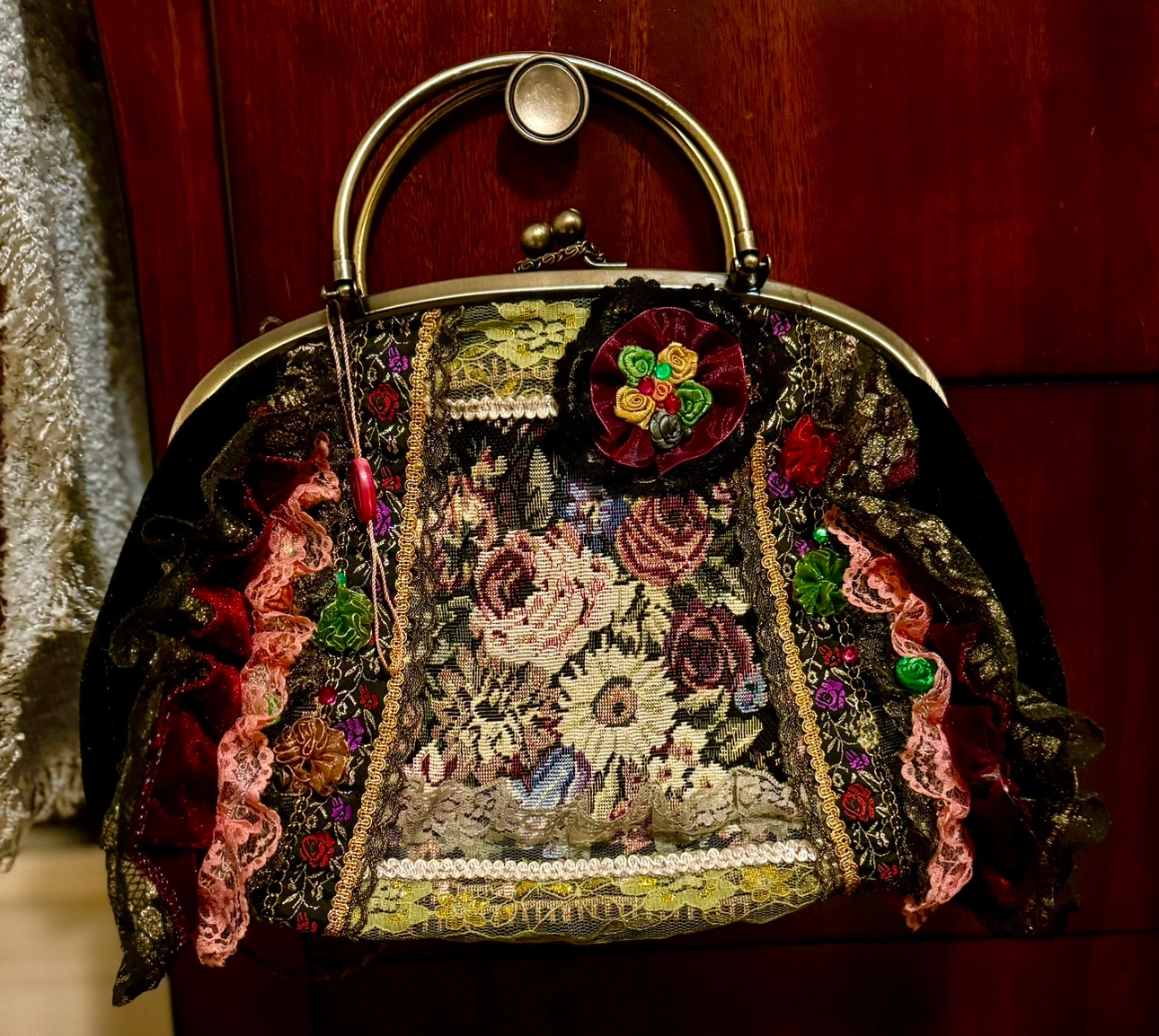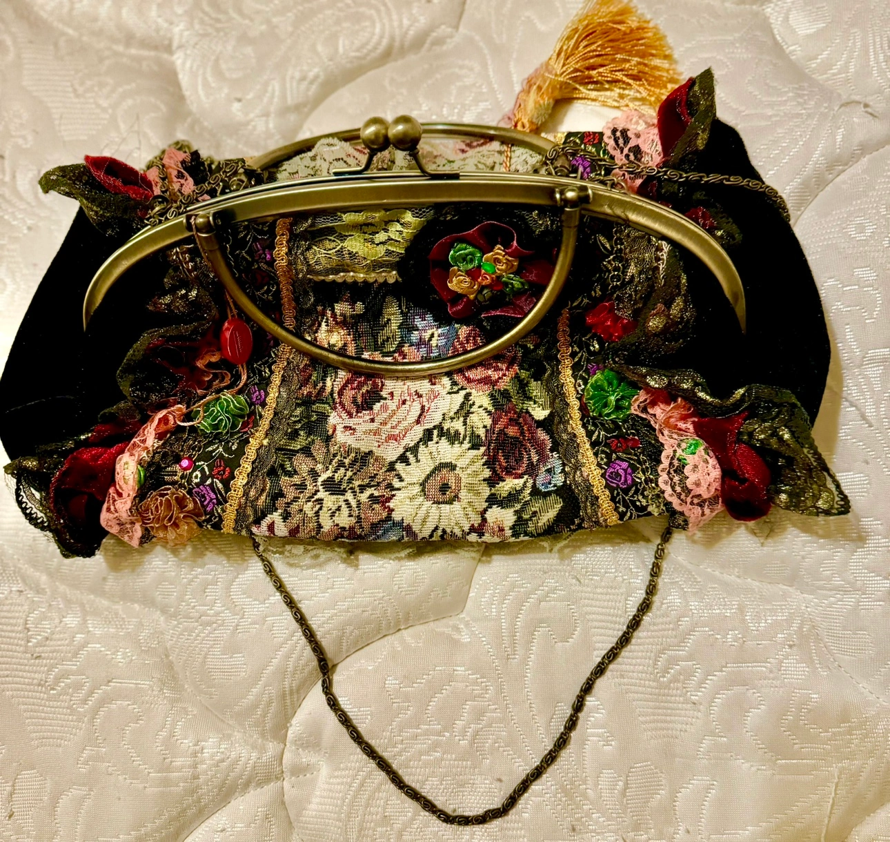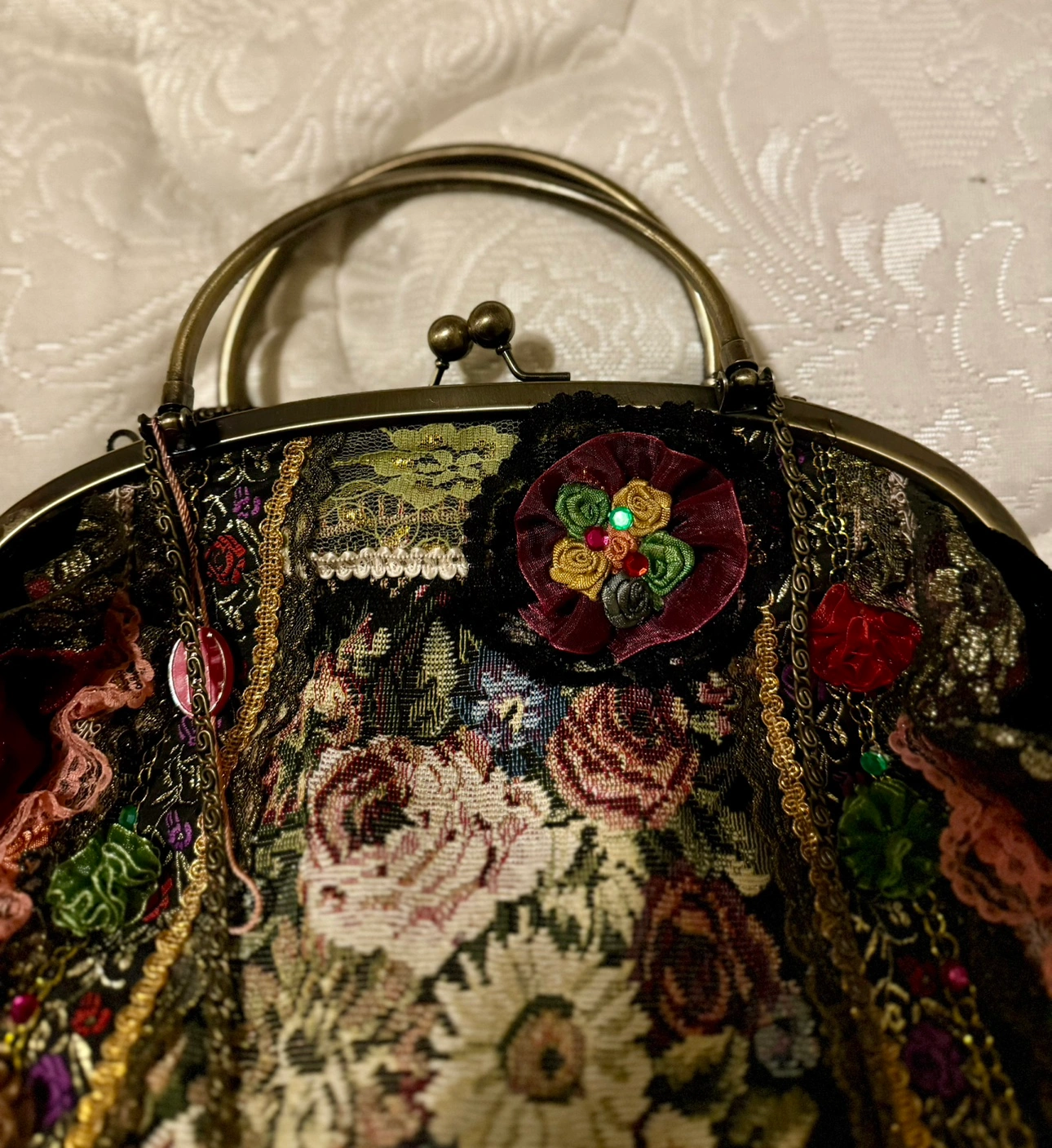 Antique Vintage Floral Victorian Lace Handmade Bag