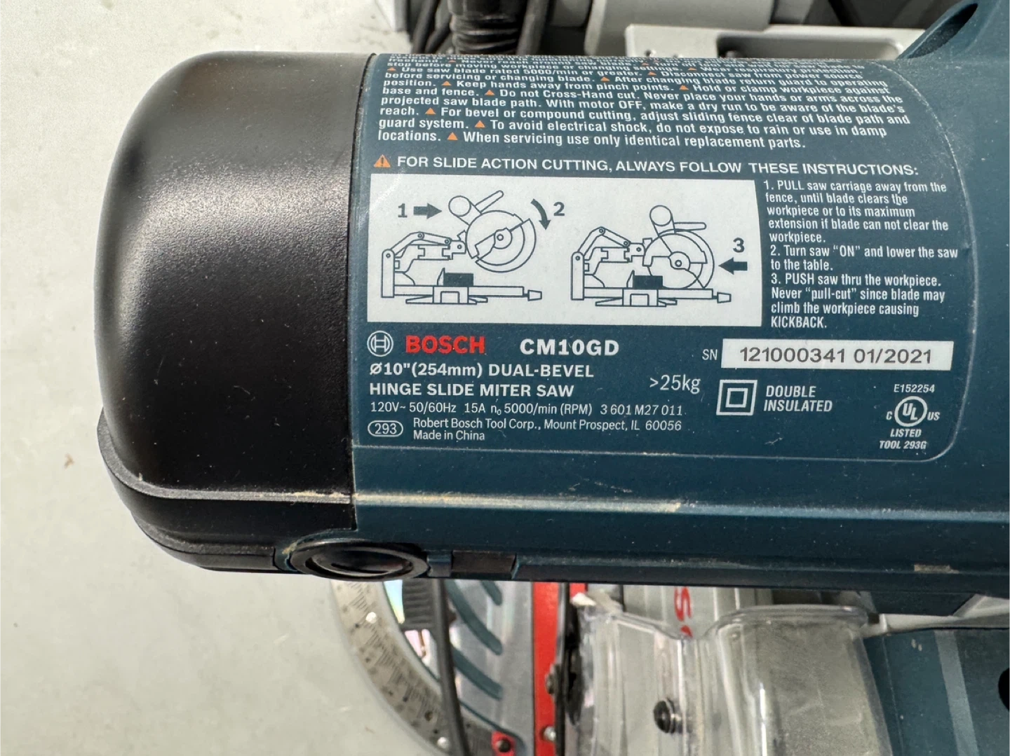 Note: Please check picture, the saw base had a small crack (not through crack), which was filled with cement glue (similar to bondo) to prevent the crack from further opening. I noticed this crack after the return window and was not worth it to go through Bosch warranty, as it has no effect on functionality. I build some excellent projects with this saw and it is very accurate and reliable. Just selling as am no longer doing woodworking.