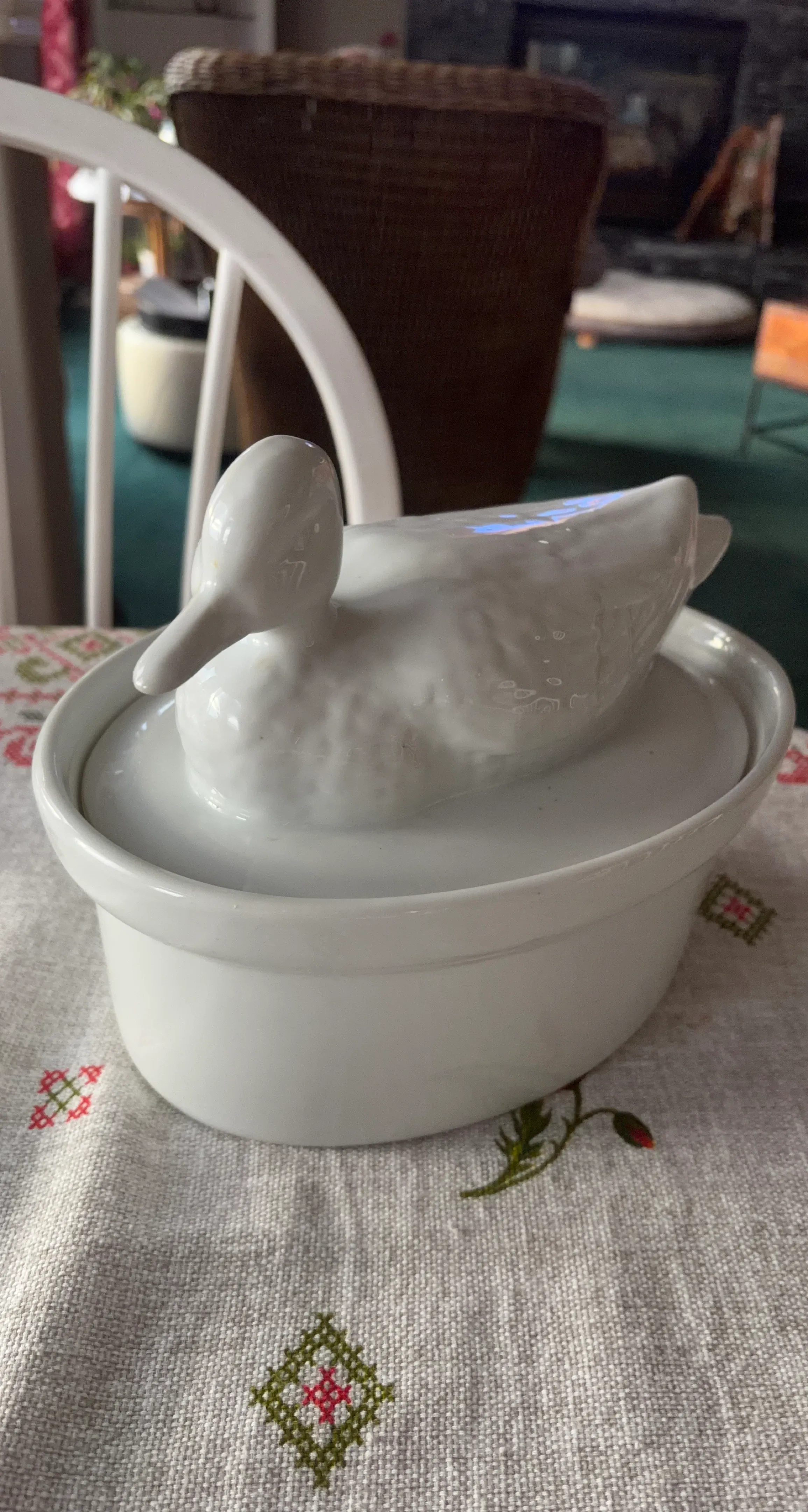 White Ceramic Duck Covered Dish