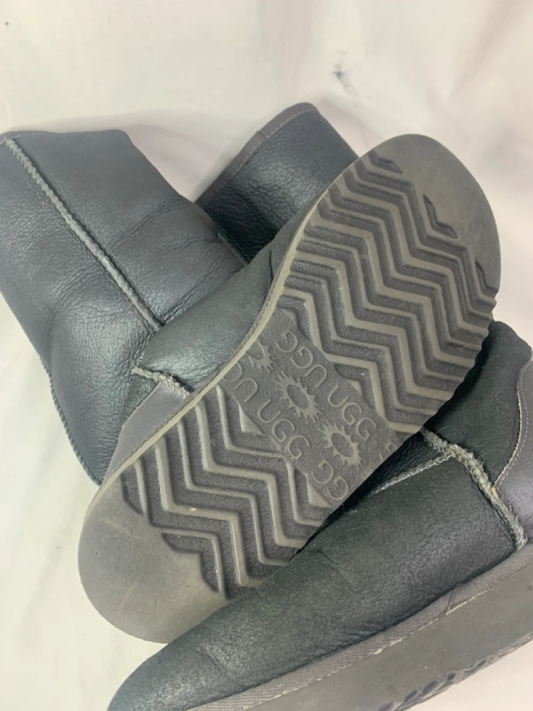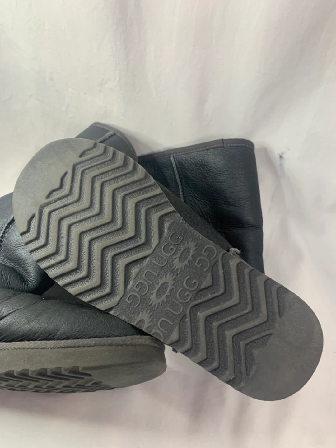 Selling a pair of UGG Australia boots in black. They're in good condition and ready for a new home! The soles show the UGG logo. Perfect for keeping your feet warm and cozy this winter season