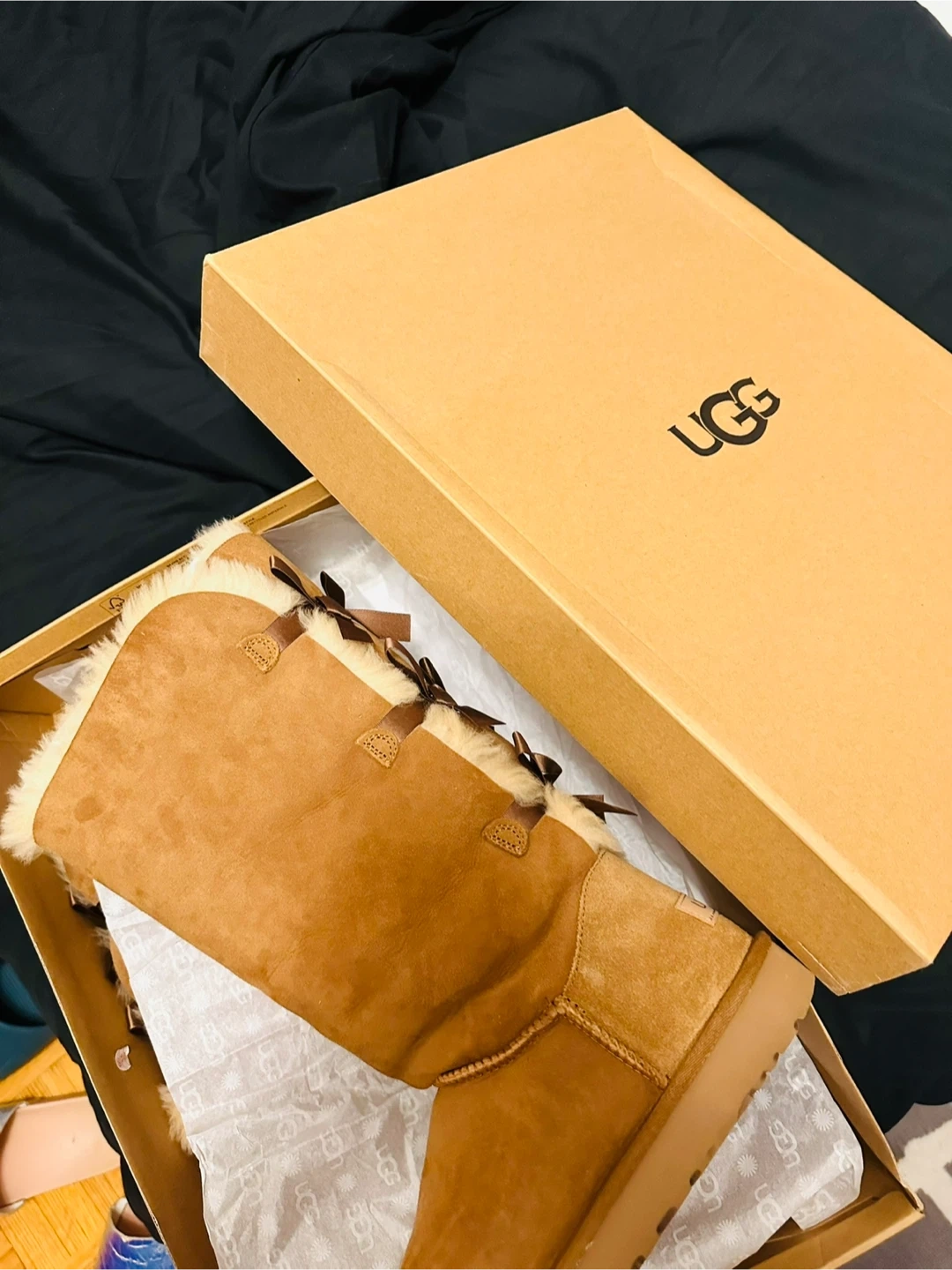 Selling a pair of UGG Bailey Bow Tall Boots in size 10! These cozy boots are in great condition and come with the original box. Perfect for keeping your feet warm and stylish during the colder months