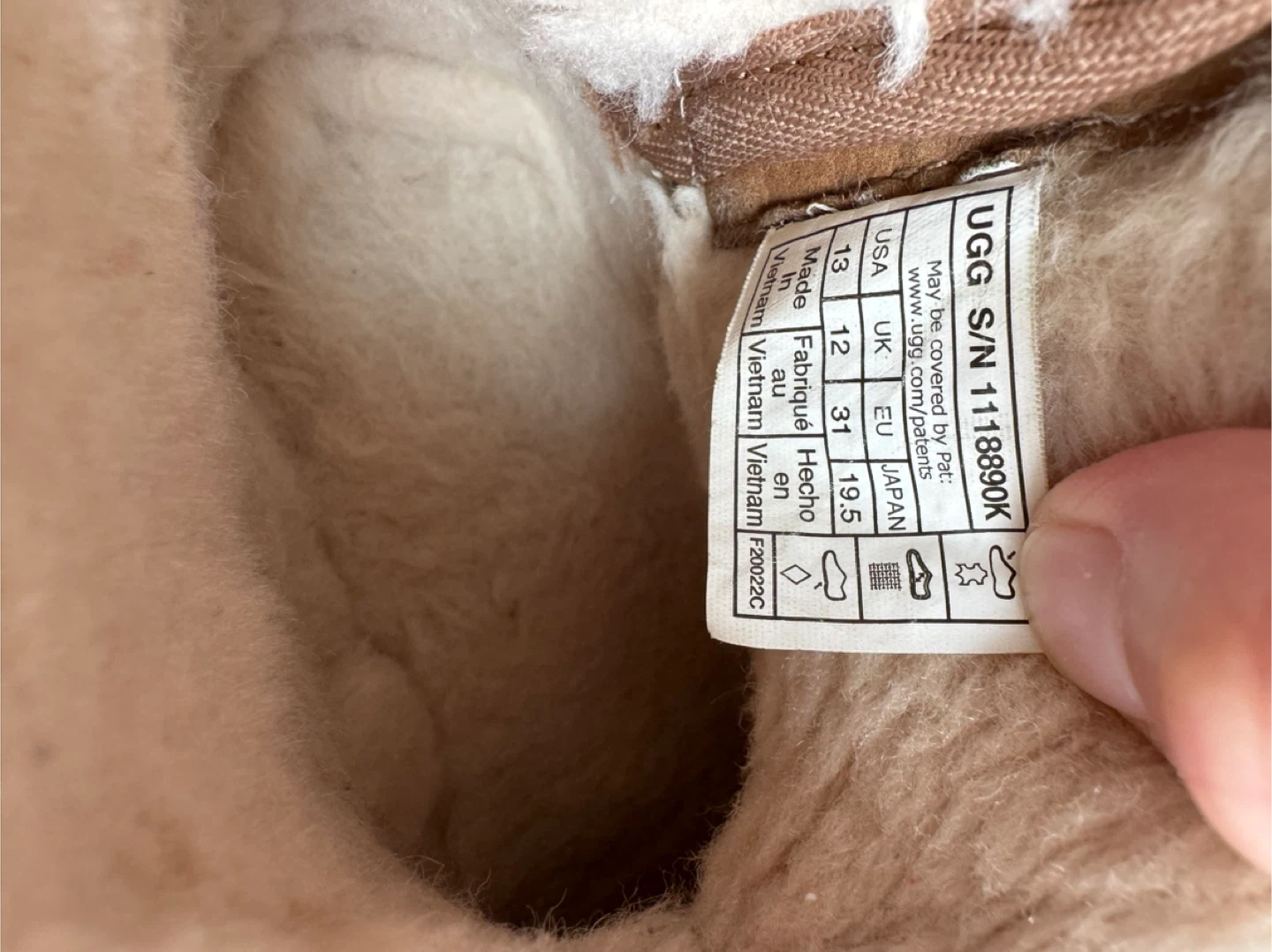10Selling a pair of UGG Classic Girl’s Short boots. They are a size US 13. The serial number is 1118890K.