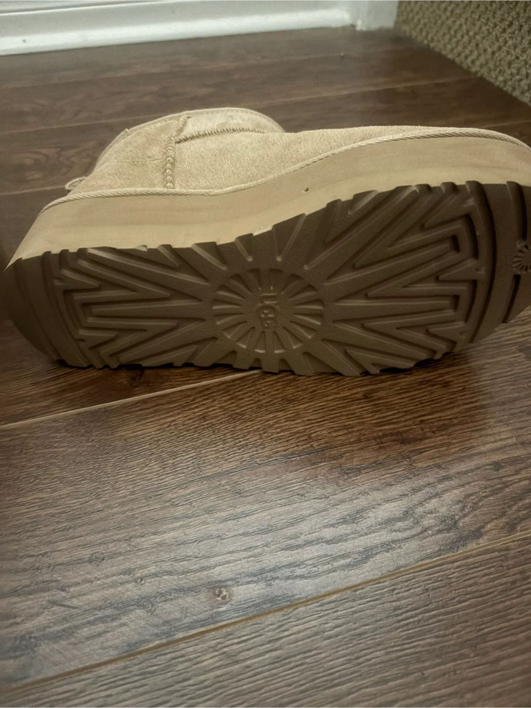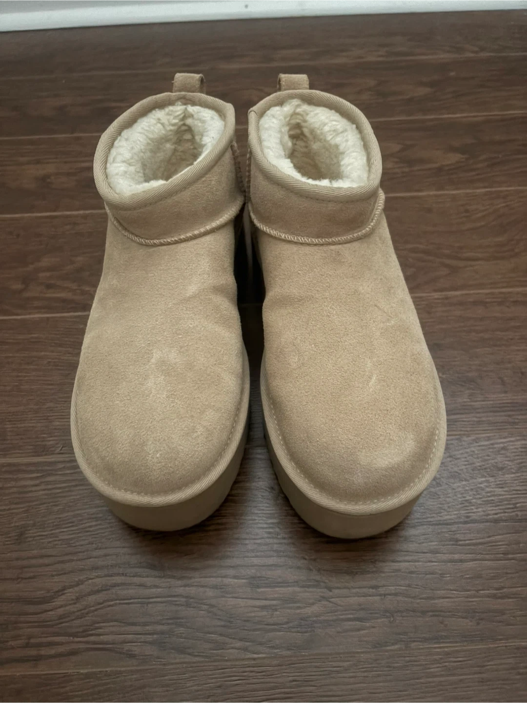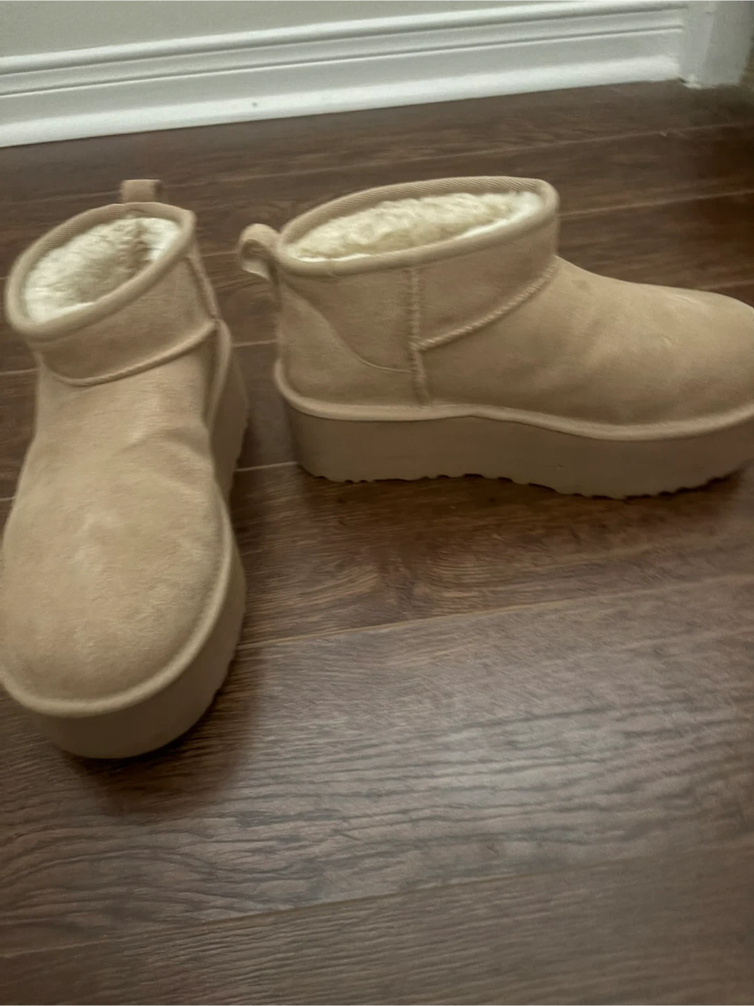 10Selling a pair of UGG Mini Platform boots in a lovely neutral colour! These are super comfy and stylish for everyday wear but I have another pair! They are in perfect condition, worn once, and ready for a new home!
