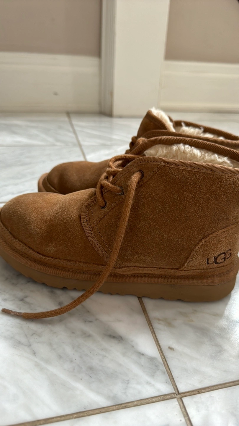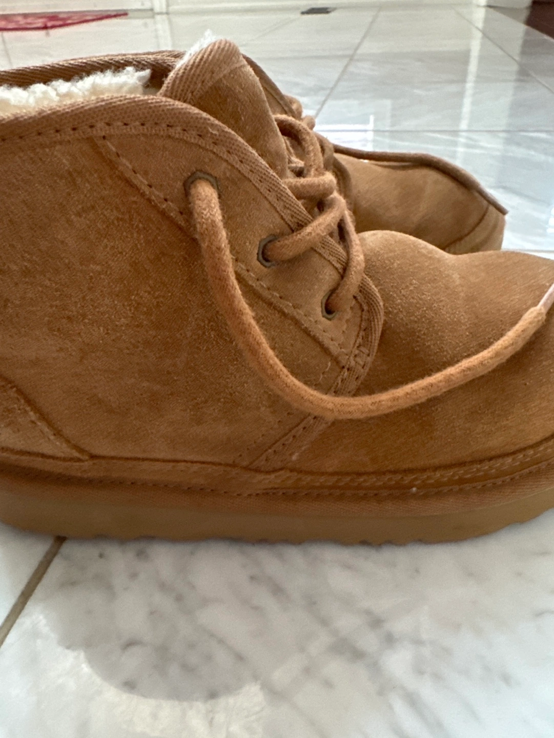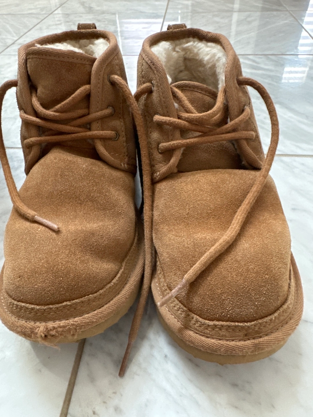 10Brown suede boots with laces. Lined with fur. Size 3 in boys