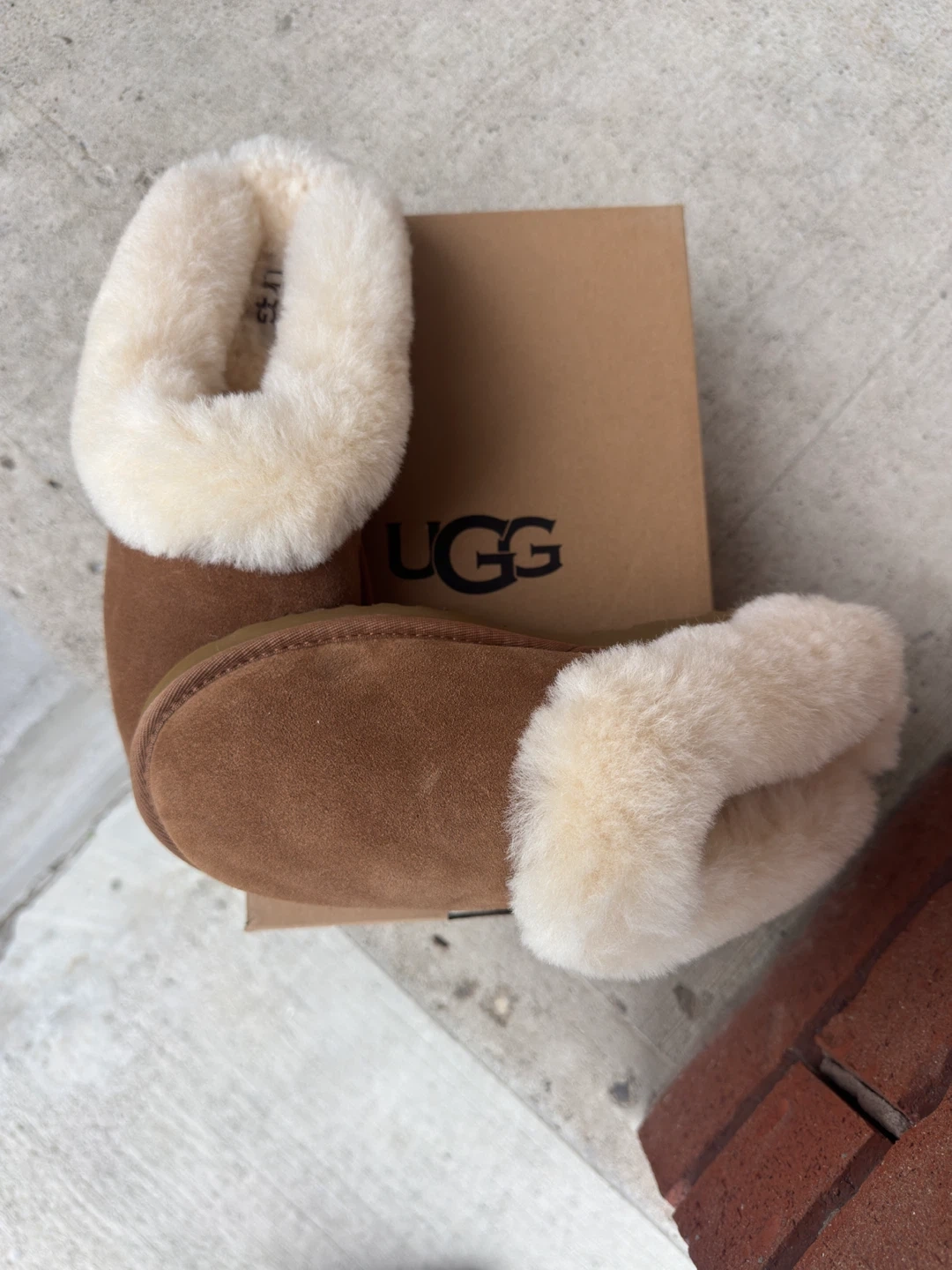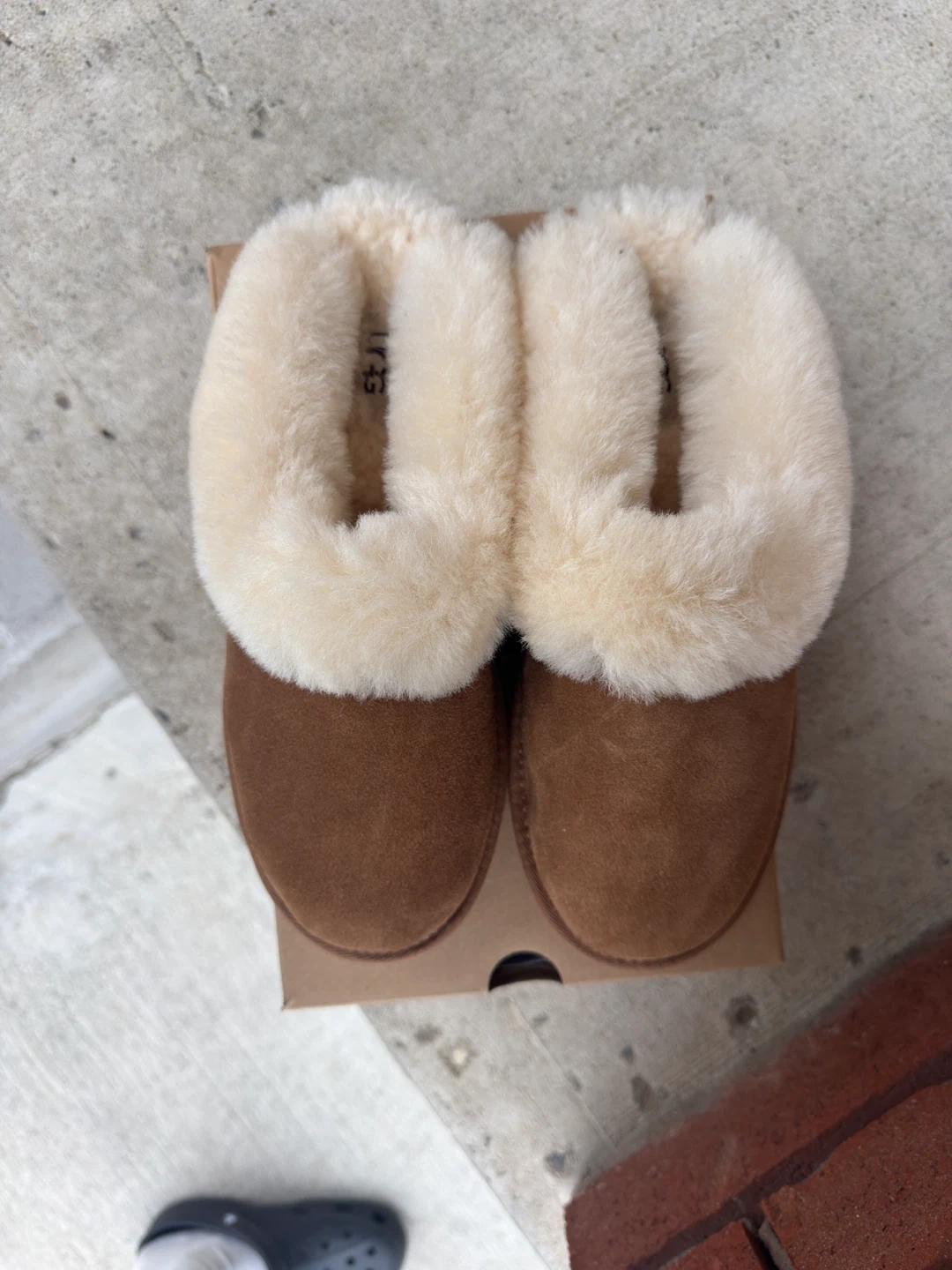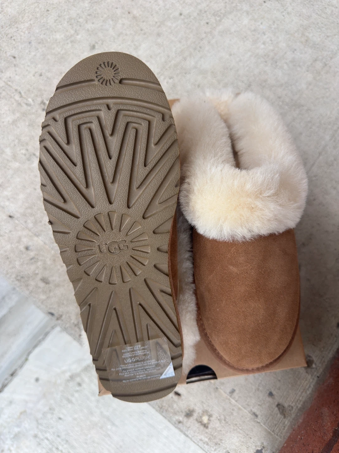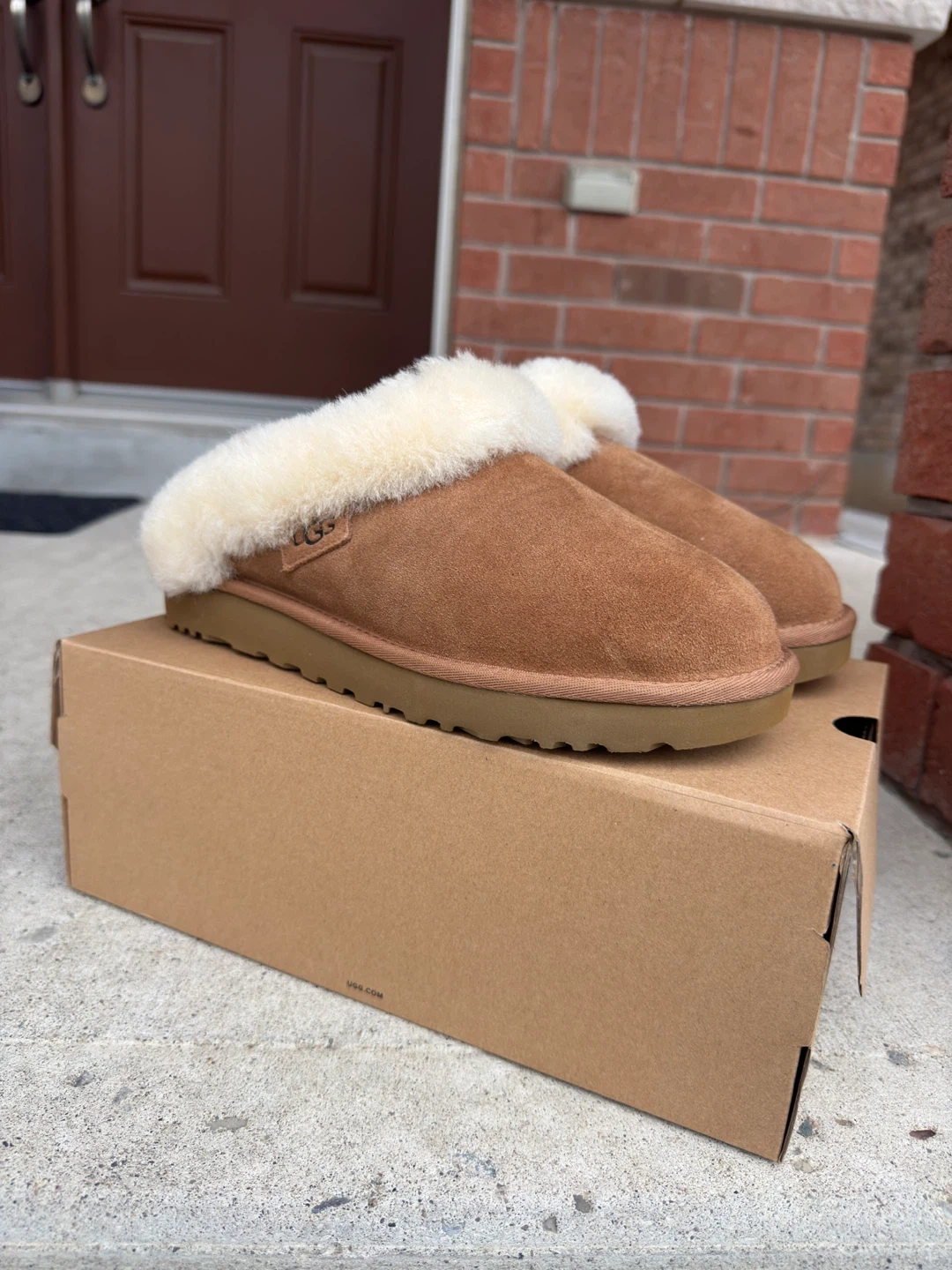 60Cozy UGG Cluggette slippers in a chestnut colour, size 9 USA. These are in brand new condition and never worn. I bought these to gift it to someone but never ended up gifting these so selling it. Perfect for keeping your feet warm and comfy around the house.