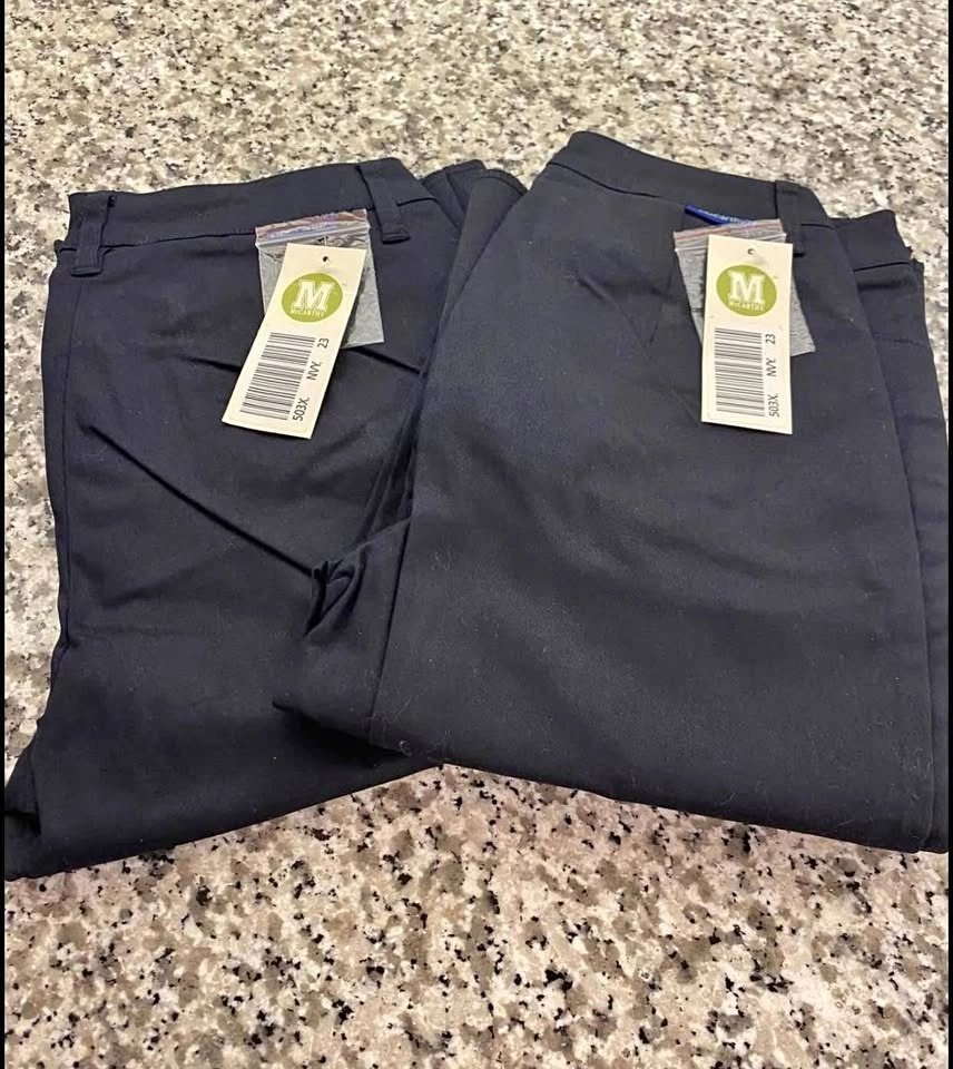 BRAND NEW with tags girls high school uniform casual pants. Unfinished length so they’re customizable. This is for one pair but Two pairs are available.