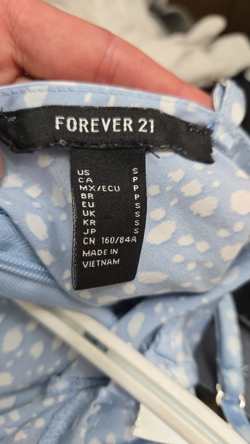 Buy & SellForever 21 Blue Floral Slip Dress - Size SForever 21 Blue Floral Slip Dress - Size S$7This is a light blue slip dress with a white speckled floral print from Forever 21. It's a size small. Spaghetti straps and a cowl neckline.ConditionLike newSizesmWHERE TO MEETCheck LocationView MapSELLERverifiedCandaceLittle River700 reviews0 chats·0 favorites·8 viewsSEND CHAT TO SELLERHi Candace! I’m interested in your listing.Hi Candace! I’m interested in your listing.Get the Karrot app to chatSign In to chat