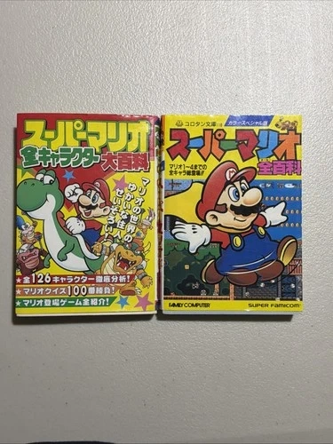 This bundle includes two Japanese-language books featuring information on the Super Mario game series. These books, originating from Japan, are perfect for fans of the iconic character Mario and provide in-depth details on the popular video game franchise. Both encyclopedias provide various character and enemy descriptions from games of the Super Mario Famicom series and Super Mario Land. There is also a short comic included. Check out my other listings for more Japanese items.