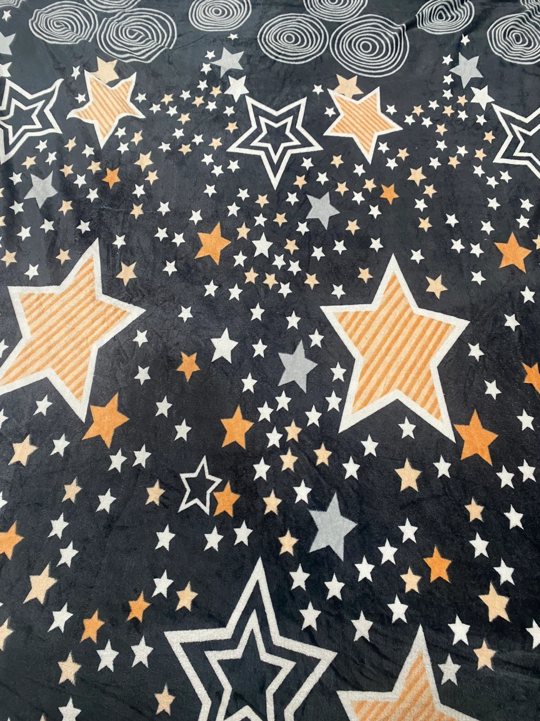 This is a soft fleece blanket with a fun star pattern. It's perfect for adding a cozy touch to any room. The blanket is a generous size for snuggling up on the couch.
