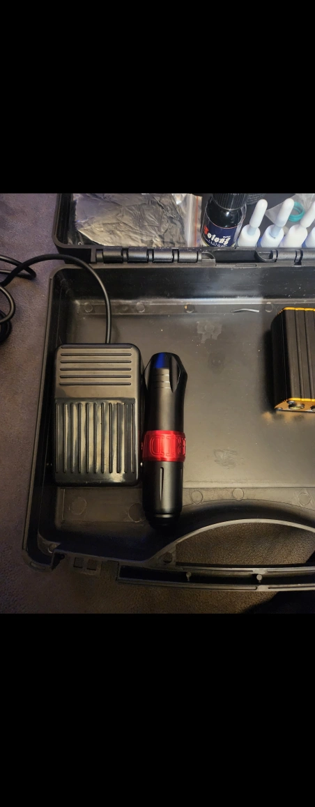 Selling a tattoo kit by Solong. Includes the pen, a foot pedal, and a power supply. The kit comes in a case for easy storage and transport. Great for beginners or experienced artists!