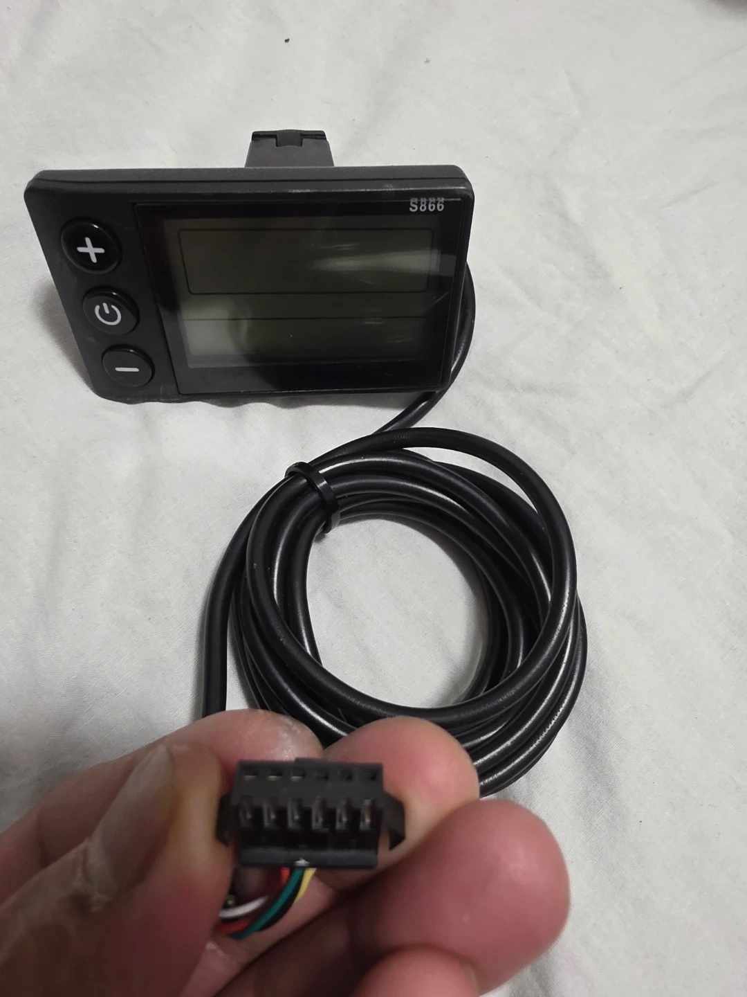 This is an S866 LCD display with a cable for an electric bike. It's compatible with many e-bike systems. Model LCD-S866.