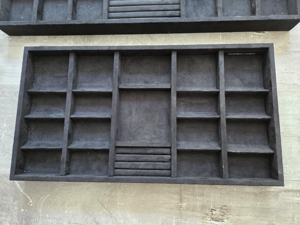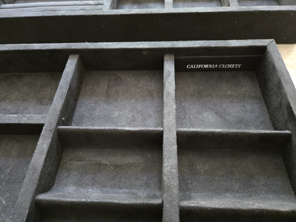 Selling a set of California Closets jewelry tray organizers! They are in great shape and perfect for keeping your jewelry neat and tidy. Each tray has different compartments for rings, necklaces, and other accessories. Get organized today!
