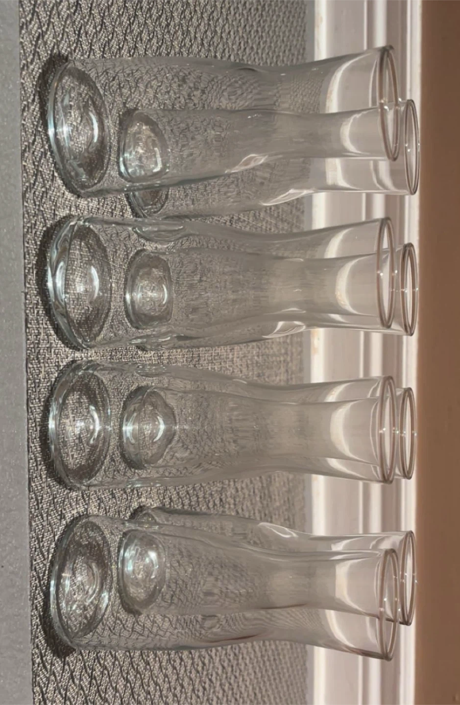 Selling a set of four clear glass bud vases. They're perfect for displaying single stems or small floral arrangements. They are in great condition and ready to add a touch of elegance to your home!