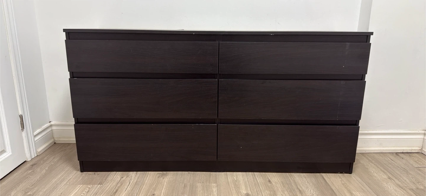 Buy & SellDark Brown 6-Drawer DresserDark Brown 6-Drawer Dresser$79This dresser has six drawers and a dark brown finish. It offers ample storage for clothes and accessories.ConditionLike newWHERE TO MEETCheck LocationView MapSELLERHiO'connor Parkview23028 reviews2 chats·1 favorites·52 viewsSEND CHAT TO SELLERHi Hi! I’m interested in your listing.Hi Hi! I’m interested in your listing.Get the Karrot app to chatSign In to chat