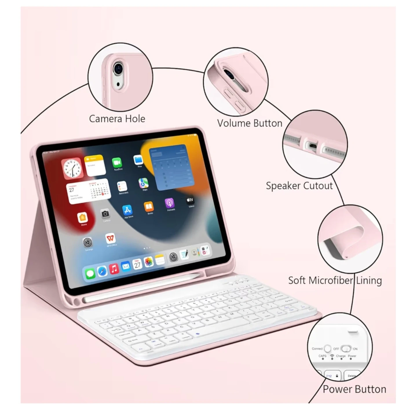 JKŞML Pink Keyboard Case for iPad 10th/11th Gen