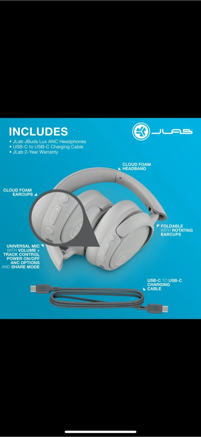 Selling a set of JLab headphones and earbuds! The headphones are the JBudd Lux ANC model and come with a USB-C to USB-C charging cable and cloud foam earcups. The earbuds are the JBudd Mini model, which are compact and come with a USB-C charging case, key-ring holder, and 3 sets of gel eartips in sizes S/M/L