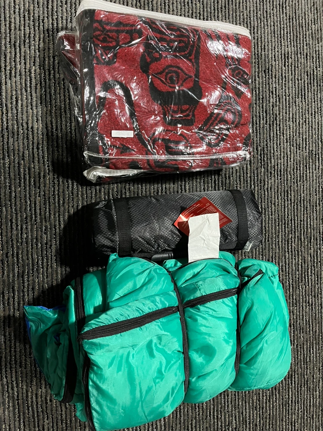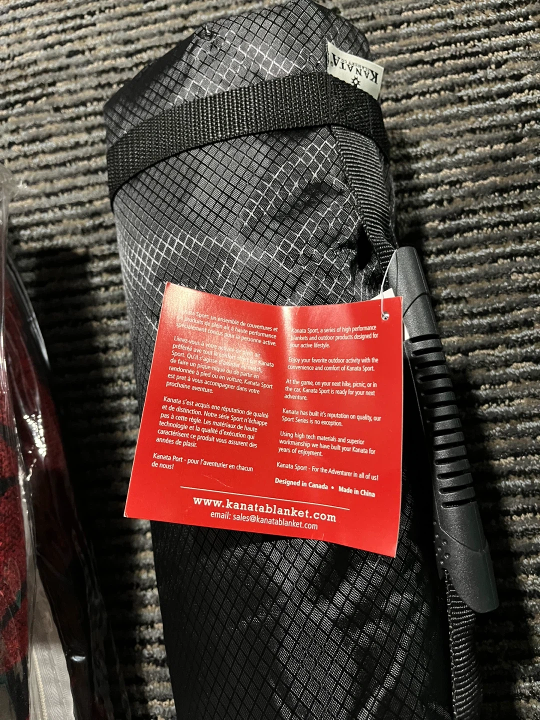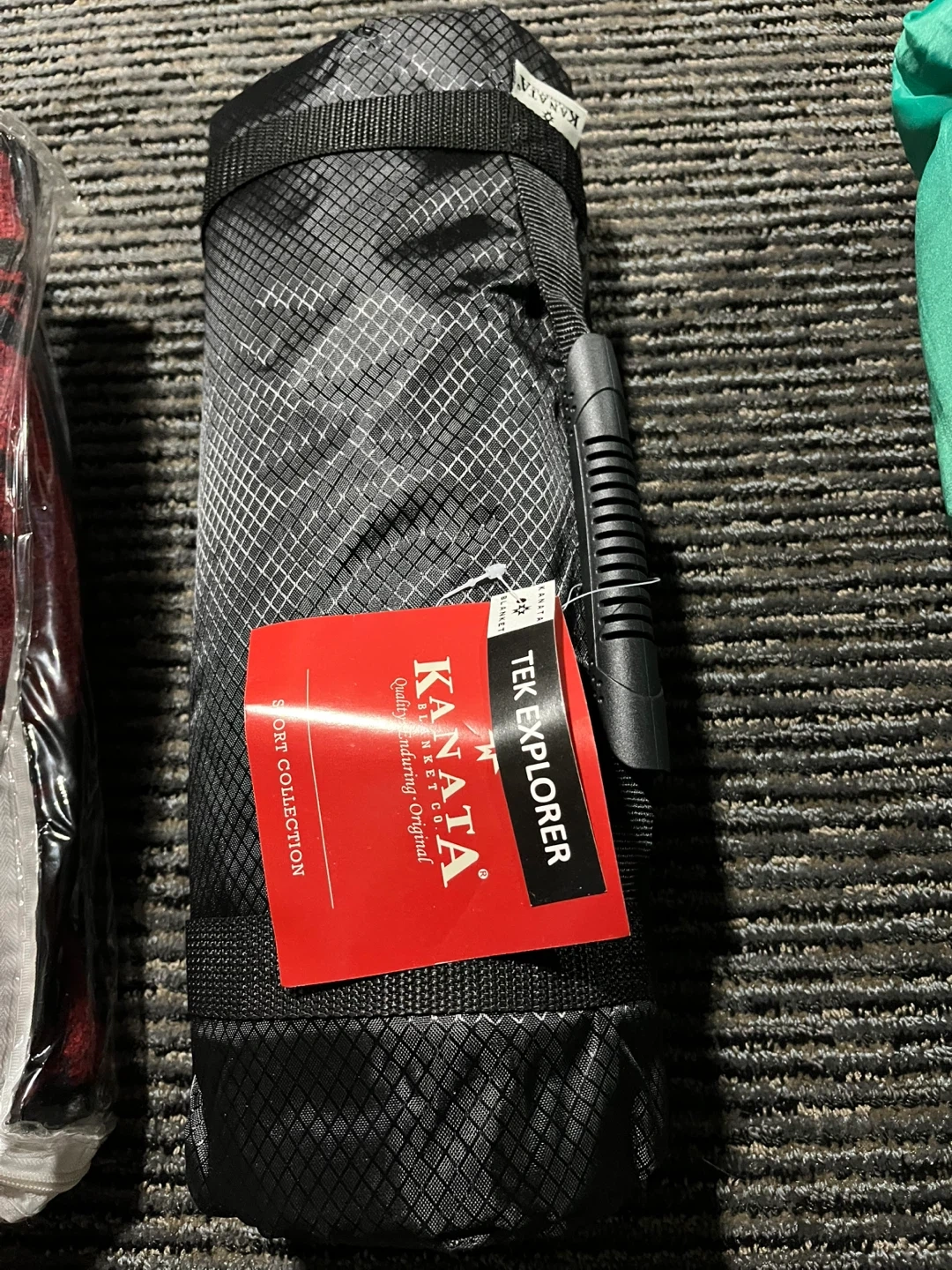 This Kanata Tek Explorer blanket is designed for outdoor use. It's made with 100% polyester fiber batting and a 100% polyester cover. Perfect for camping trips or cozying up outdoors! $15 each