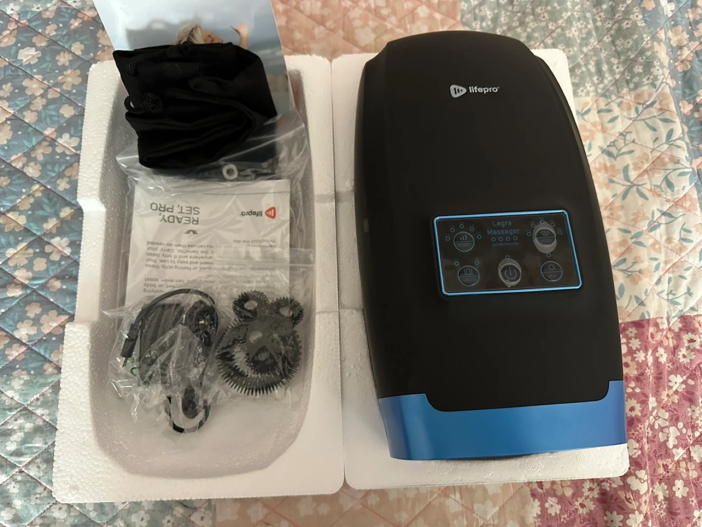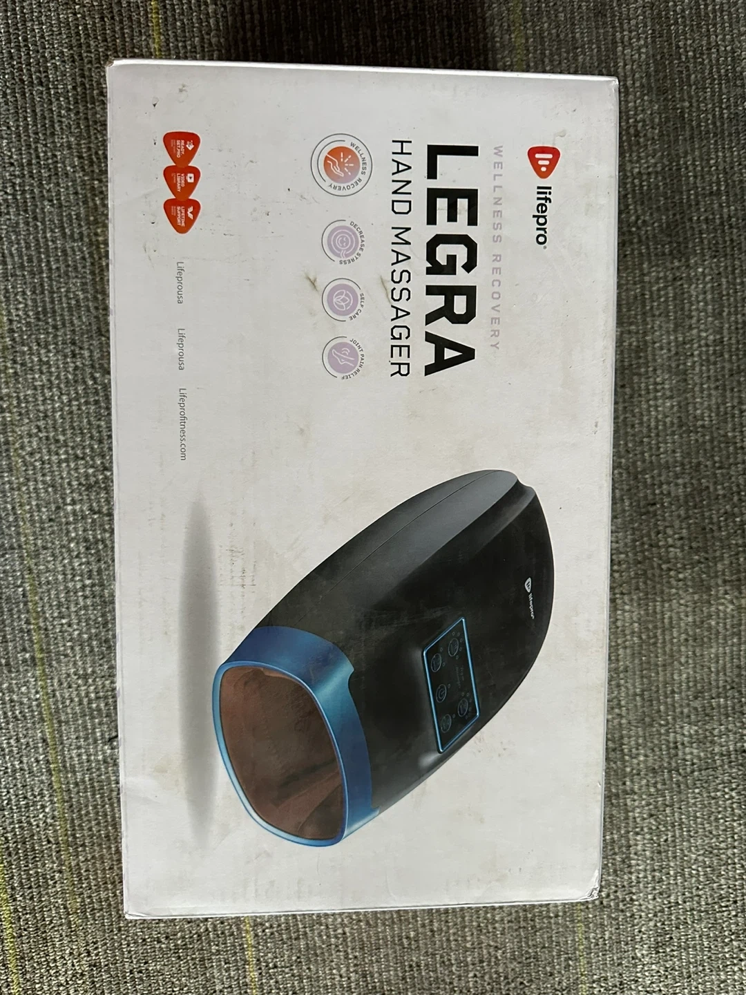 This is the Lifepro Legra hand and wrist massager. It offers heated compression for pain relief. Includes original box and accessories.