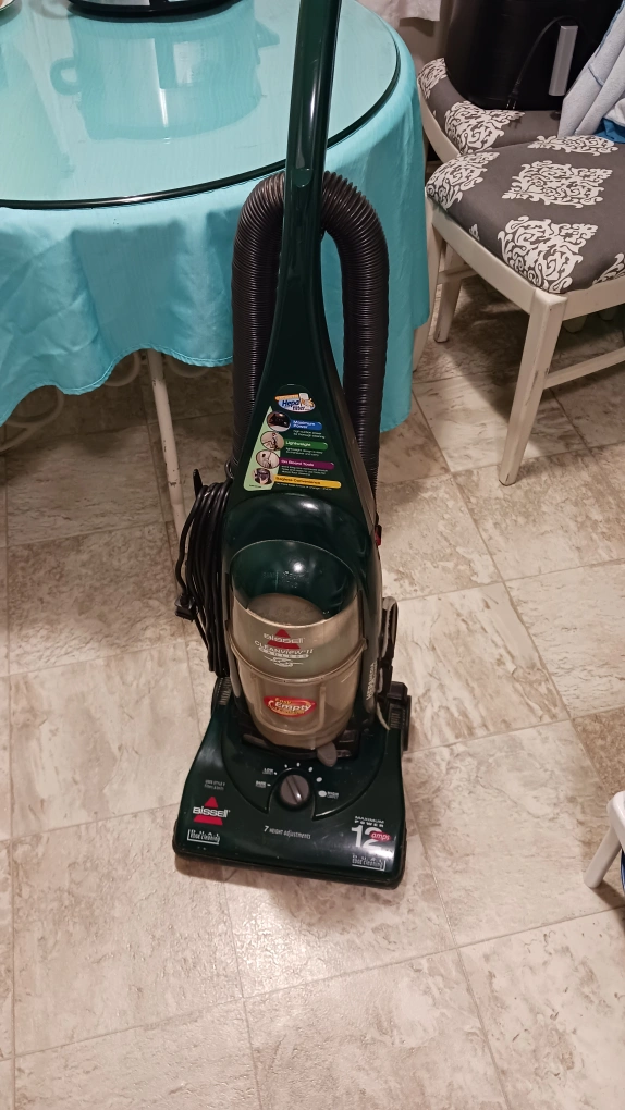 Used Bissell Cleanview II upright vacuum. Features a 7-position height adjustment. Includes attachments. bagless vacuum