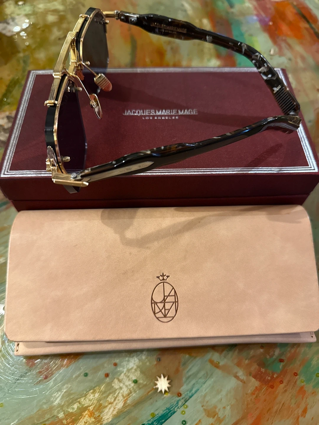 Selling a pair of Jacques Marie Mage sunglasses. They come with the original box and case. Stylish and in great condition!
