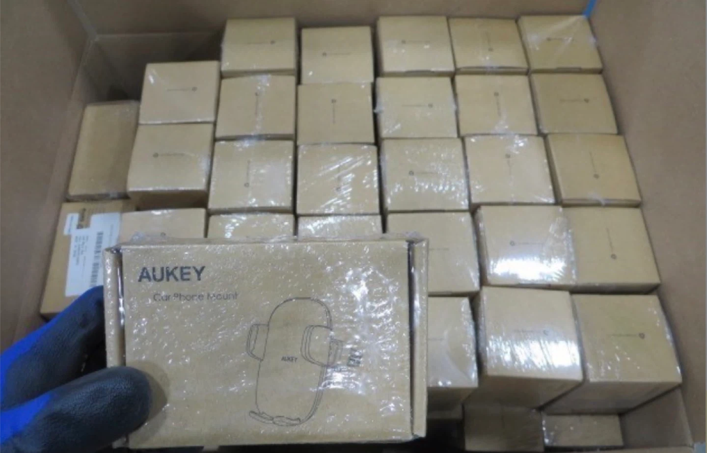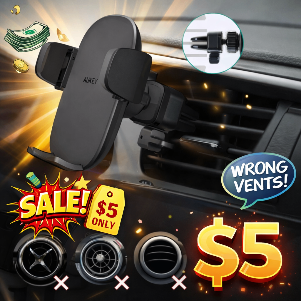 This is an AUKEY car phone mount. It's designed to attach to your car's air vent. It includes adjustable clamps to hold your phone securely. This mount is useful for keeping your phone visible while driving.