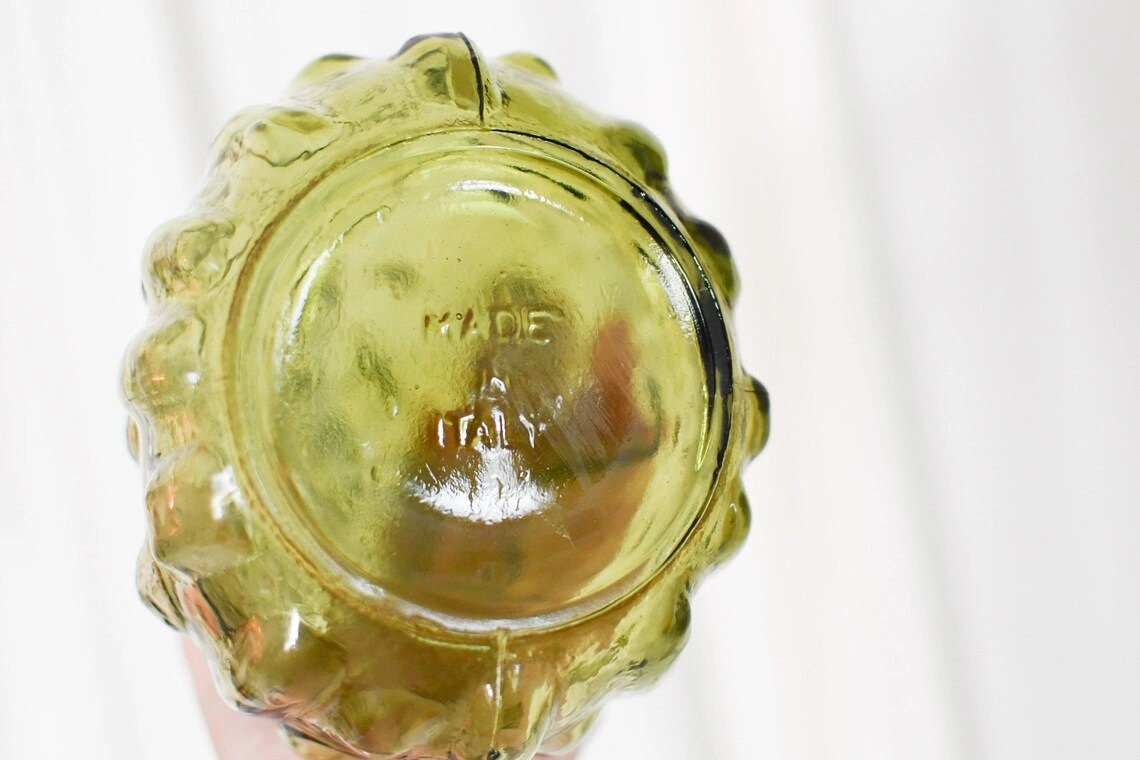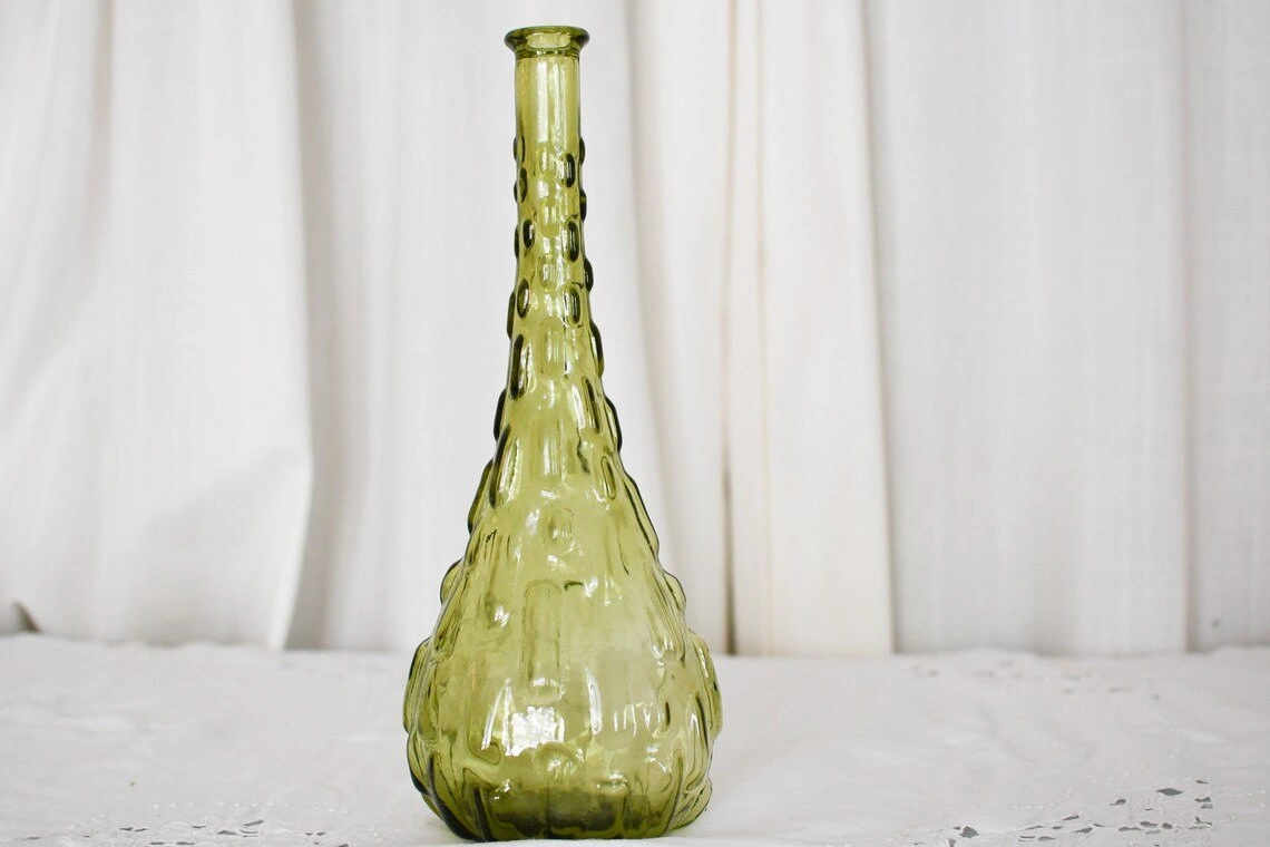 Embrace the vintage charm of the Empoli Italian Glass Genie Bottle in Avocado Green.