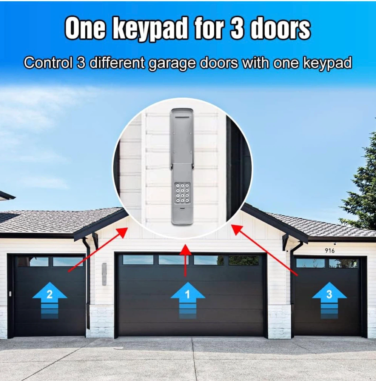 Control 3 different garage doors with one keypad. Features a backlit number pad and Security +2.0 and rolling code technology. Compatible with Liftmaster/Chamberlain/Sears Craftsman/Raynor garage door openers manufactured since 1993 with learn buttons.