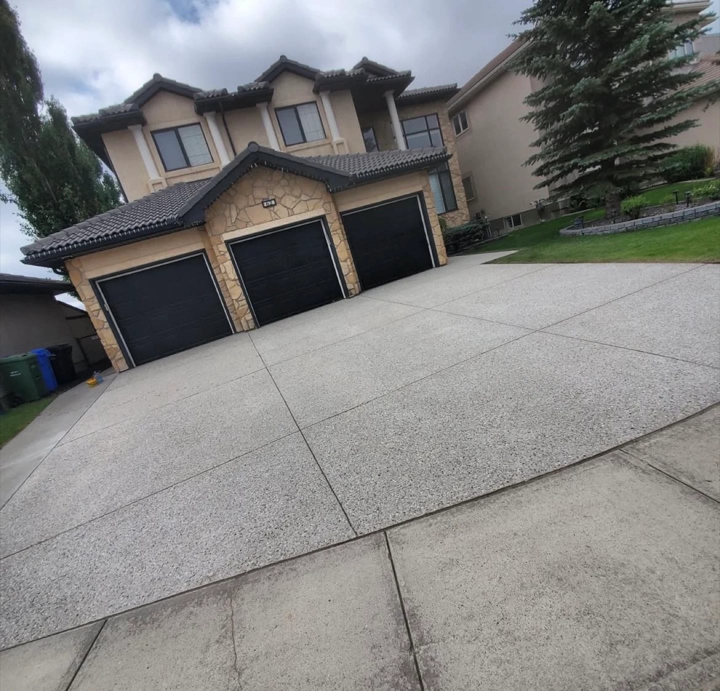 Sandblasting can potentially remove up to 99% of old sealer and stains, as well as expose aggregate, and achieve custom stencil designs in concrete, increasing curb appeal and value to your property.