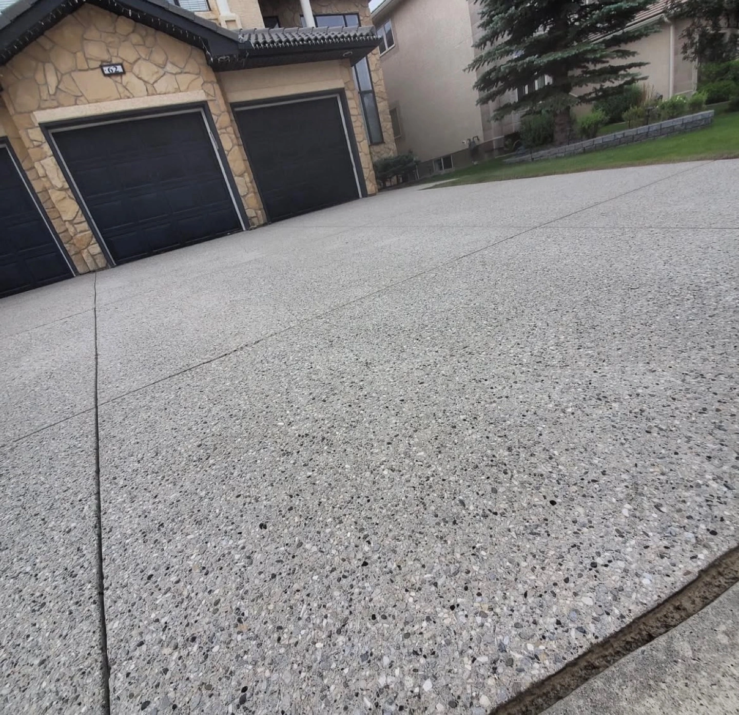 Sandblasting can potentially remove up to 99% of old sealer and stains, as well as expose aggregate, and achieve custom stencil designs in concrete, increasing curb appeal and value to your property.