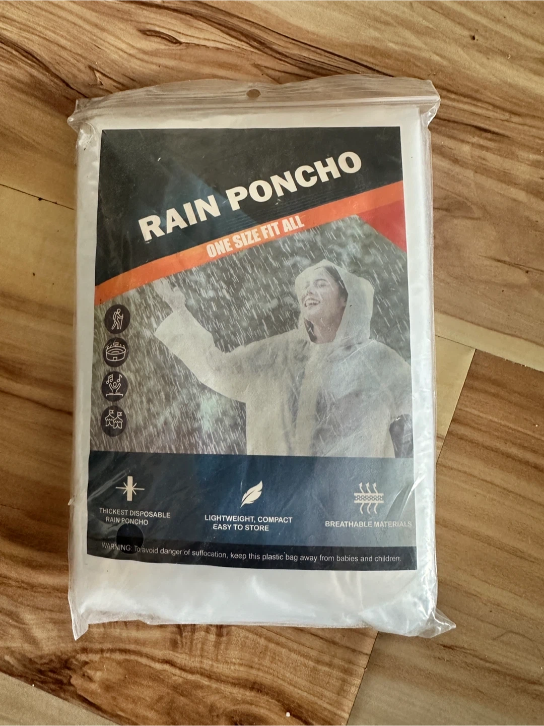 Pack of two disposable rain ponchos. One size fits all and they're lightweight and compact for easy storage. Fits neatly into pockets or purses.