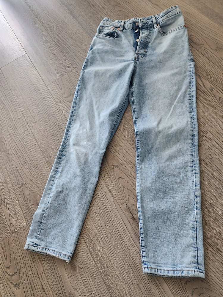 Selling a pair of H&M Mom Jeans in a size 6. They're in great condition and made of 99% cotton with a bit of elastane for comfort. Perfect for a casual, stylish look!